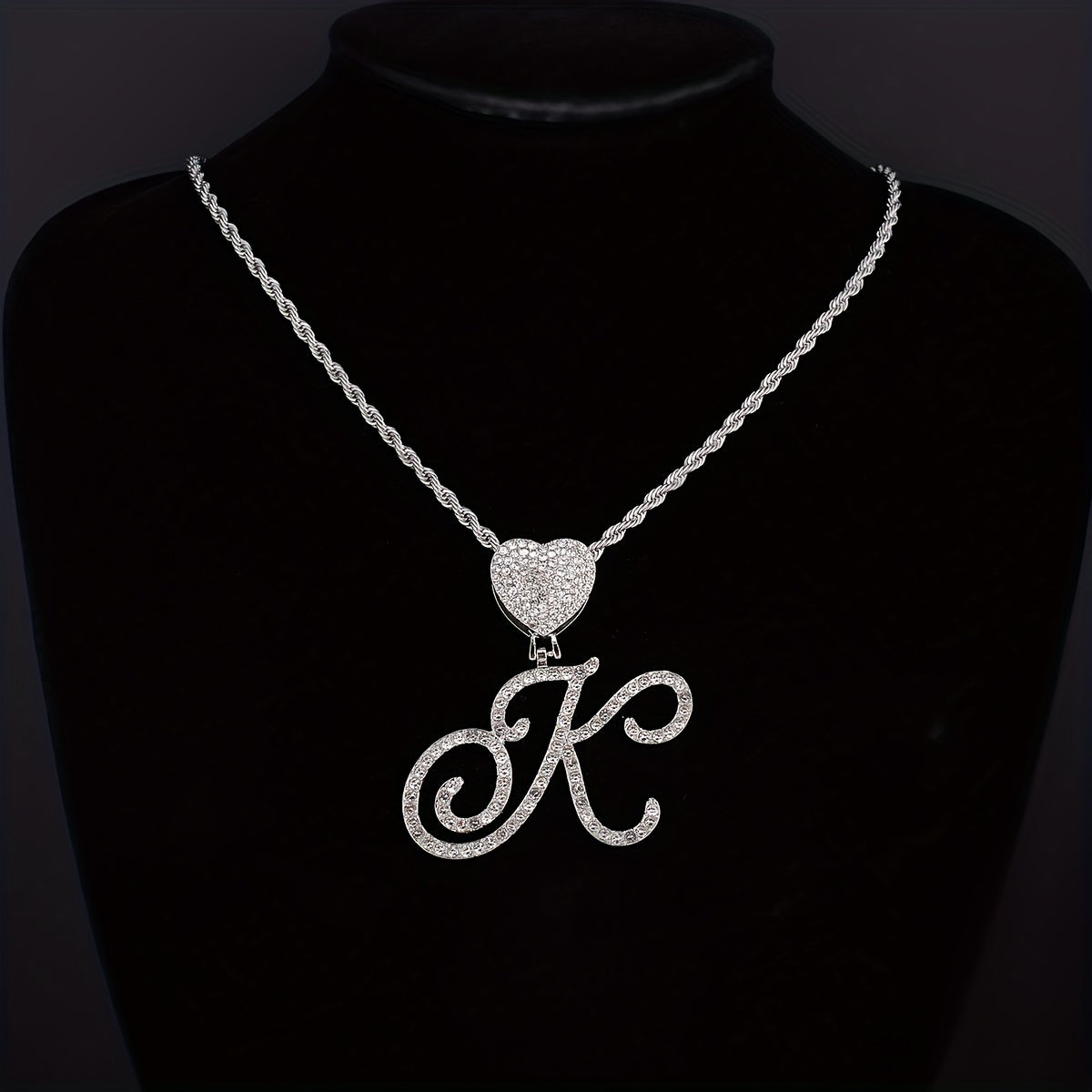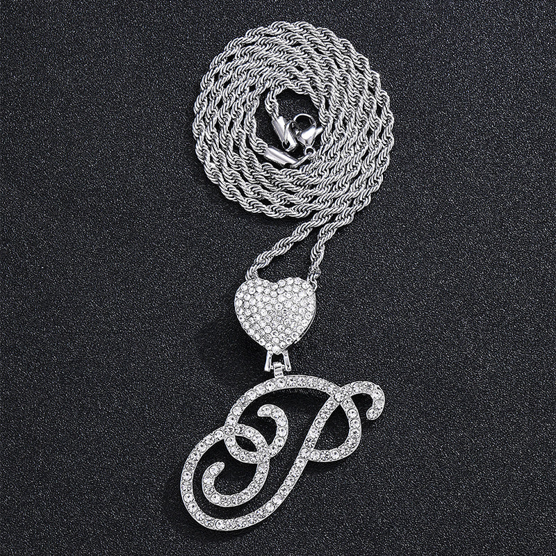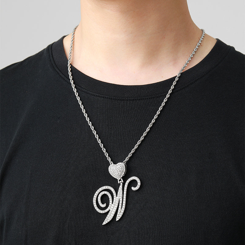 This stylish necklace features a cursive silver initial heart pendant showcasing the letter A. Perfect for adding a touch of hip hop style to your jewelry collection.