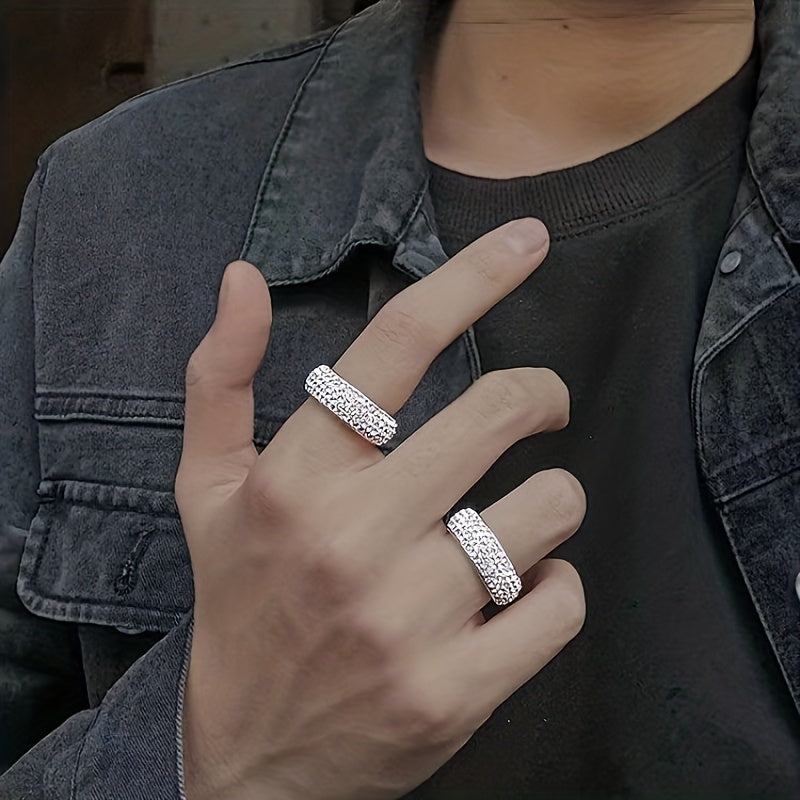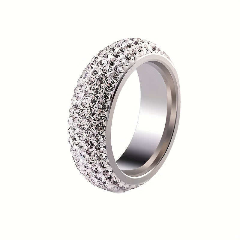 This stunning ring features five rows of sparkling rhinestones in a beautiful curved design. Perfect for adding a touch of glamour to any outfit.