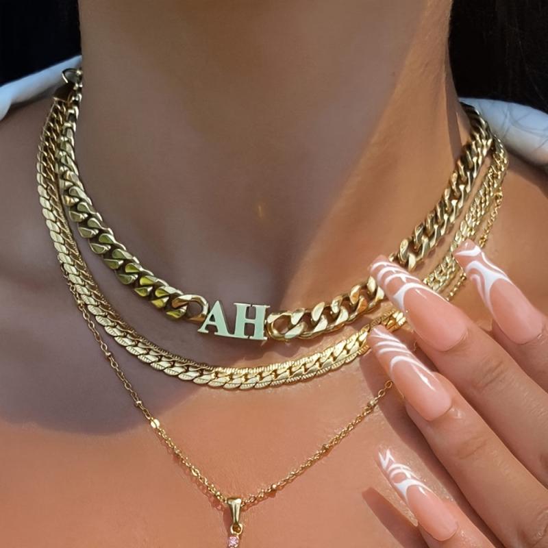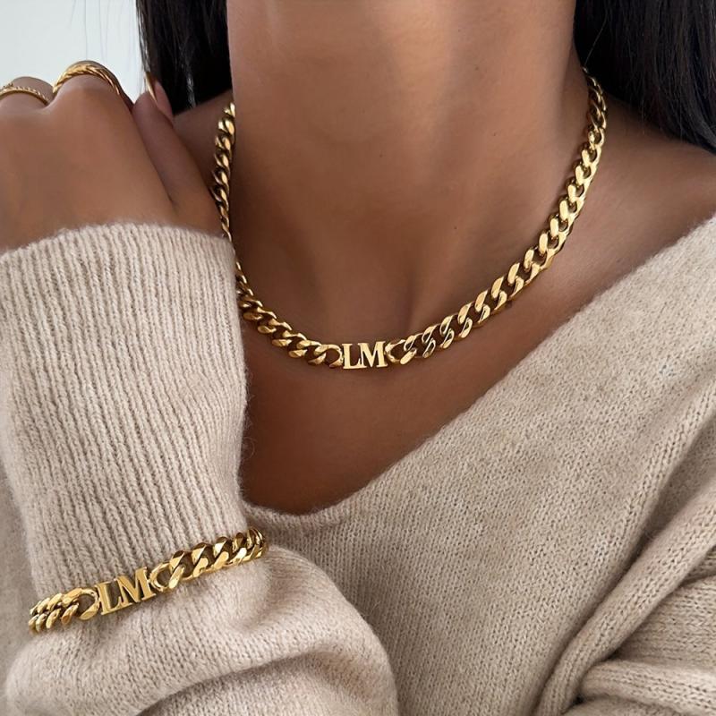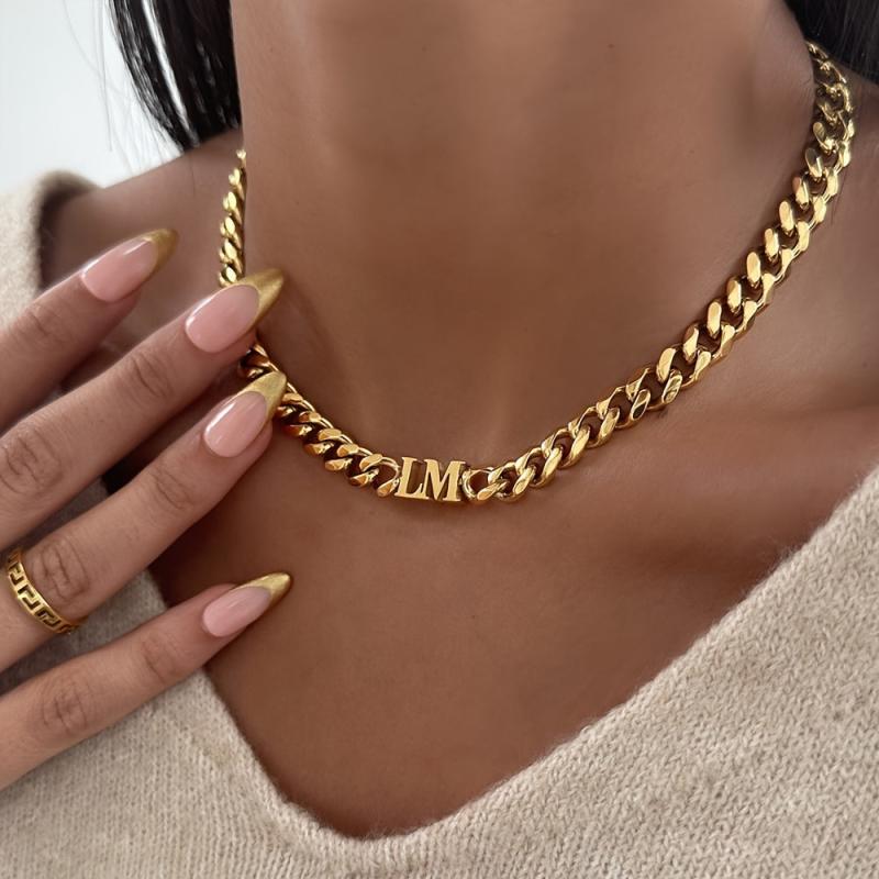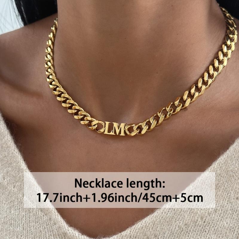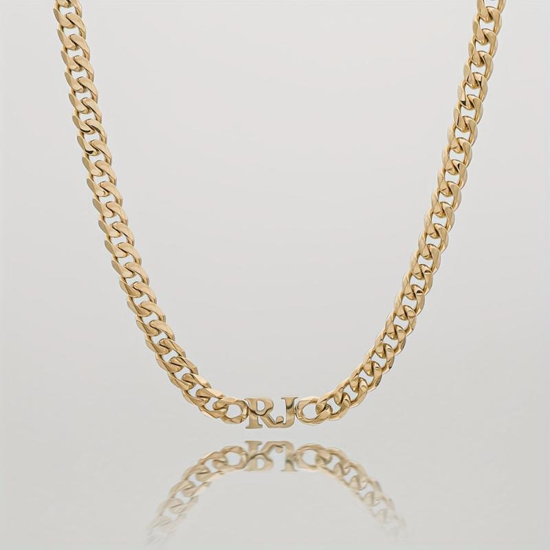 Elegant 18k gold plated Cuban chain necklace with personalized English name pendant. Perfect gift for family holiday or Christmas.