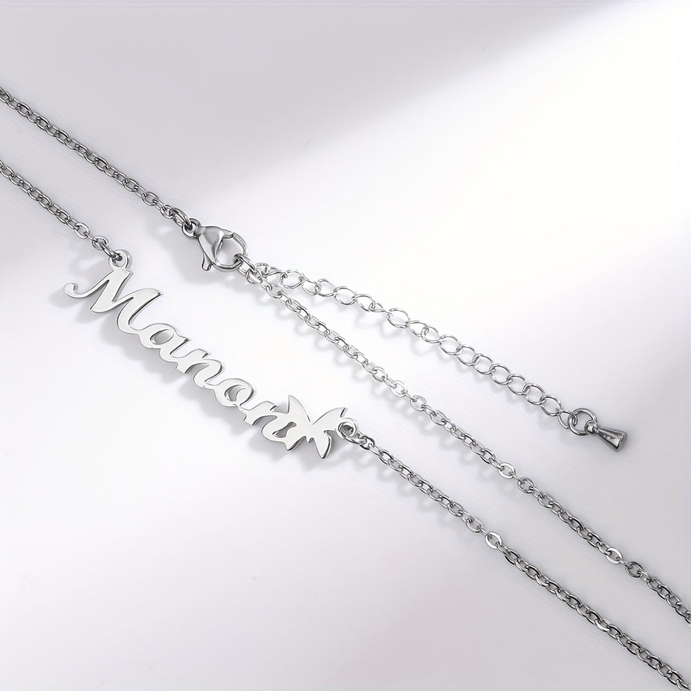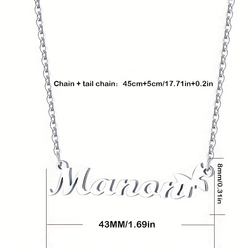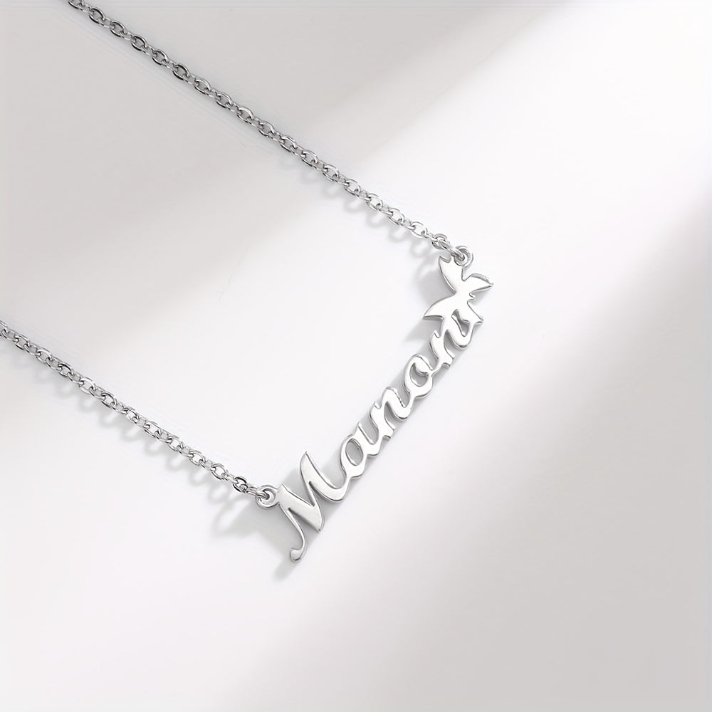 Personalized butterfly pendant necklace made from titanium steel with customizable name and font options. Ideal gift for loved ones.