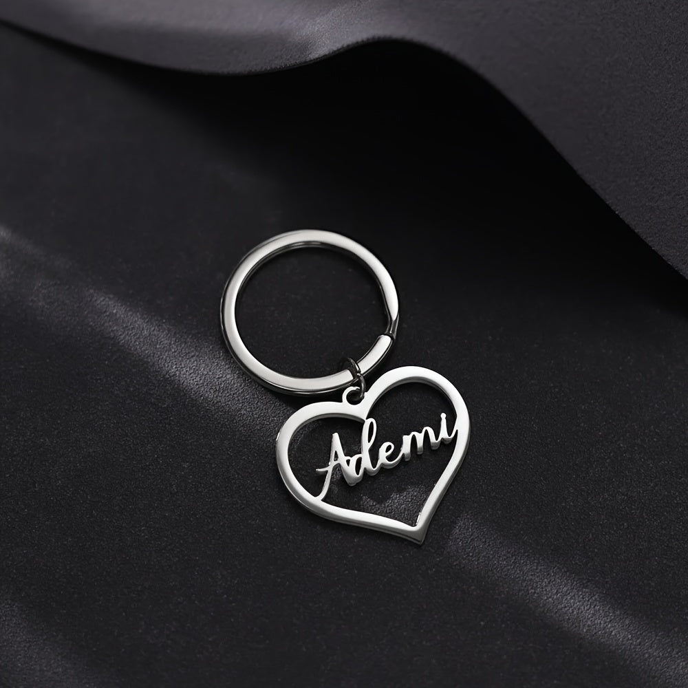 Capture your love with this personalized heart keychain featuring custom engraved letters. Made of durable stainless steel, this romantic keychain is a perfect gift for her.