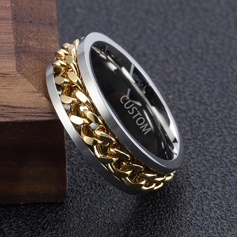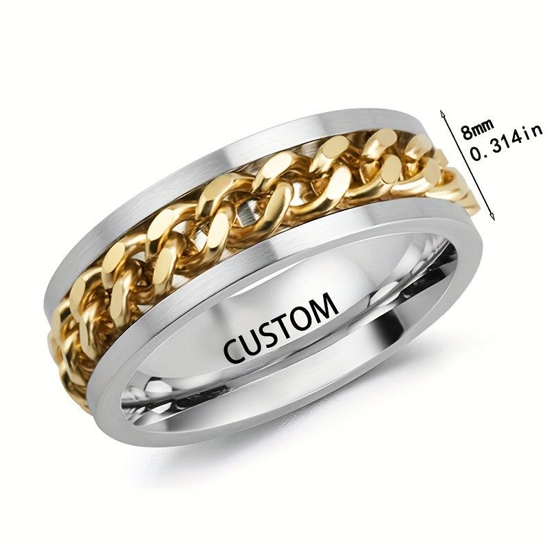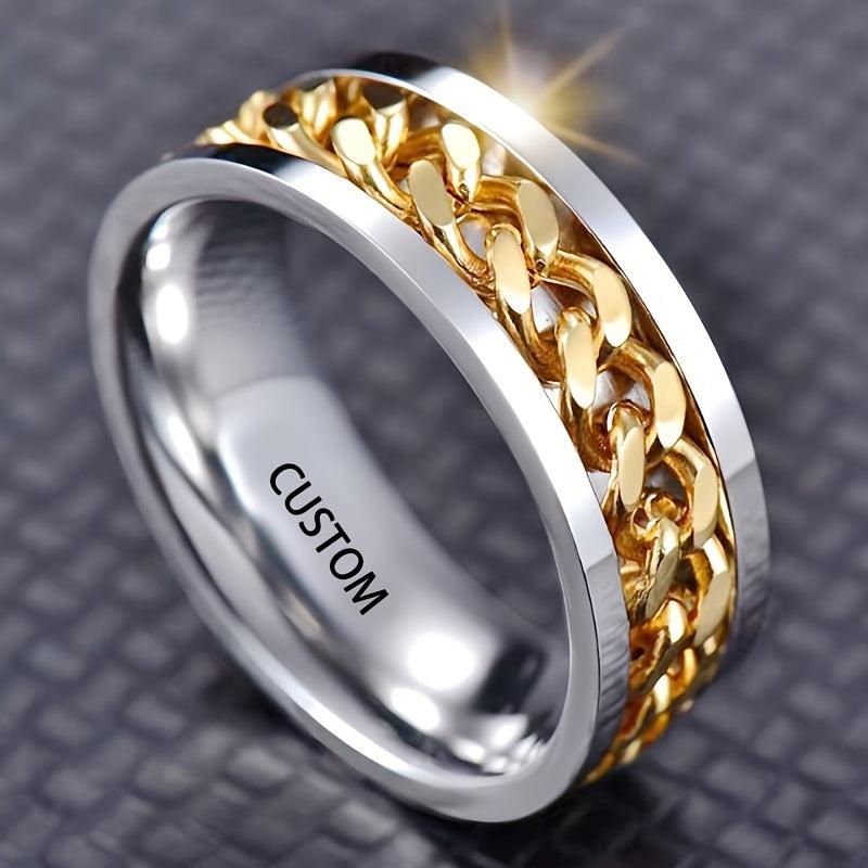 This stylish ring is the perfect accessory for weddings, engagements, parties, or as a Father's Day or birthday gift for him. Made with high-quality materials and custom engraving, it adds a personal touch to any outfit.