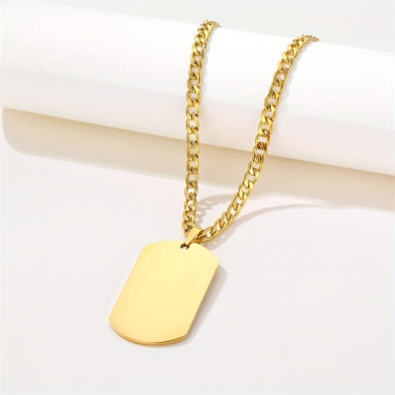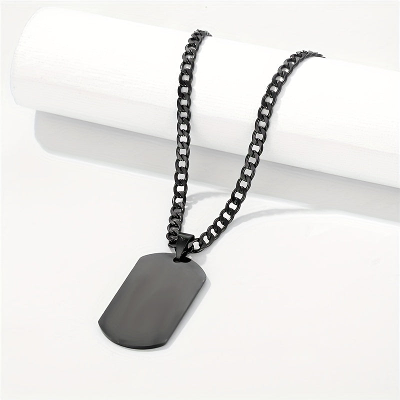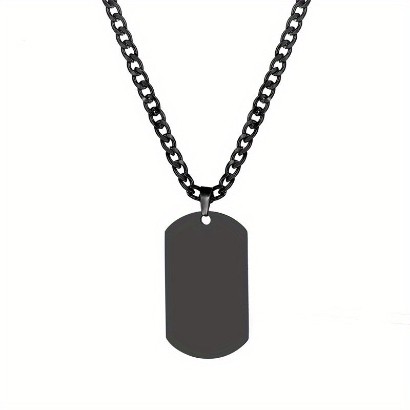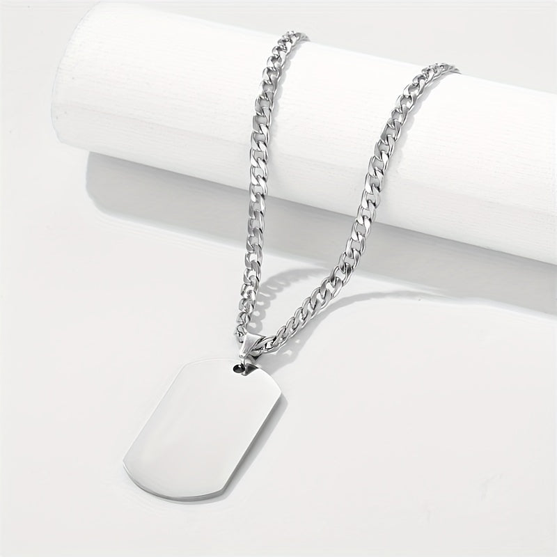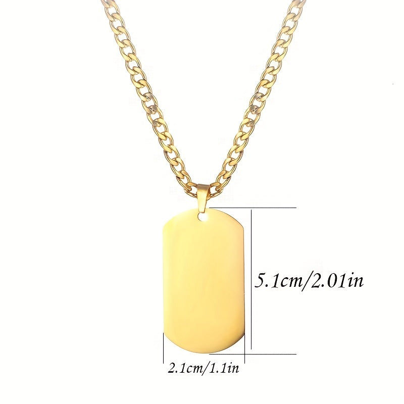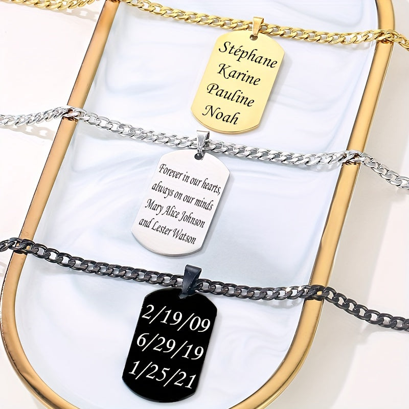 Show off your personal style with this custom engraved name necklace featuring a dog tag pendant on a stainless steel 5mmNK Cuban chain. Perfect for men and women, this military tag pendant jewelry is a stylish addition to any outfit.