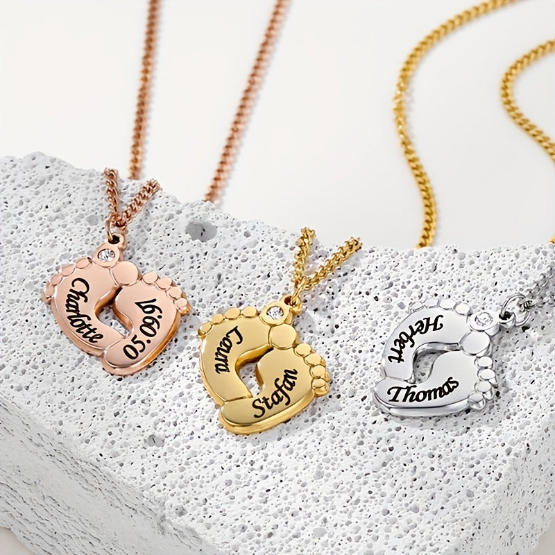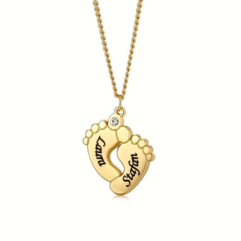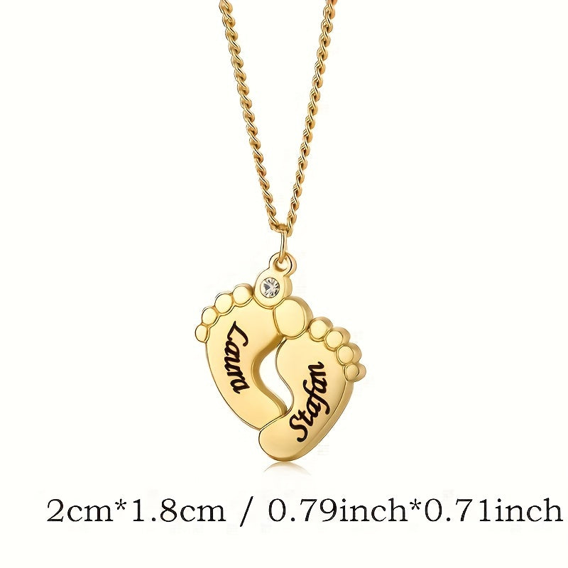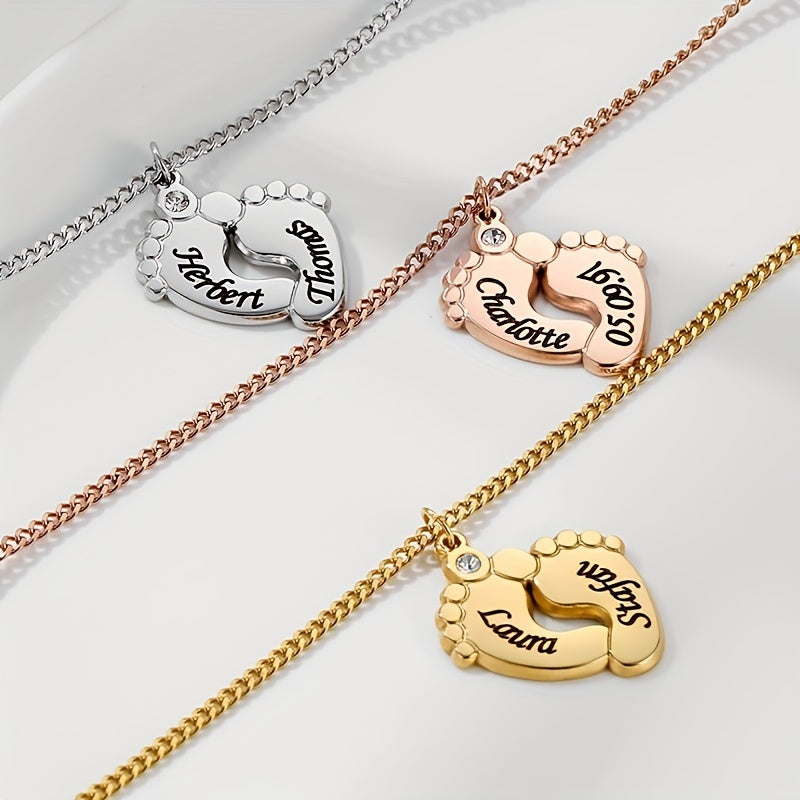 Personalized stainless steel necklace with cubic zirconia ankle pendant. Custom engraving available for a unique touch. Add a personal touch to your accessories.