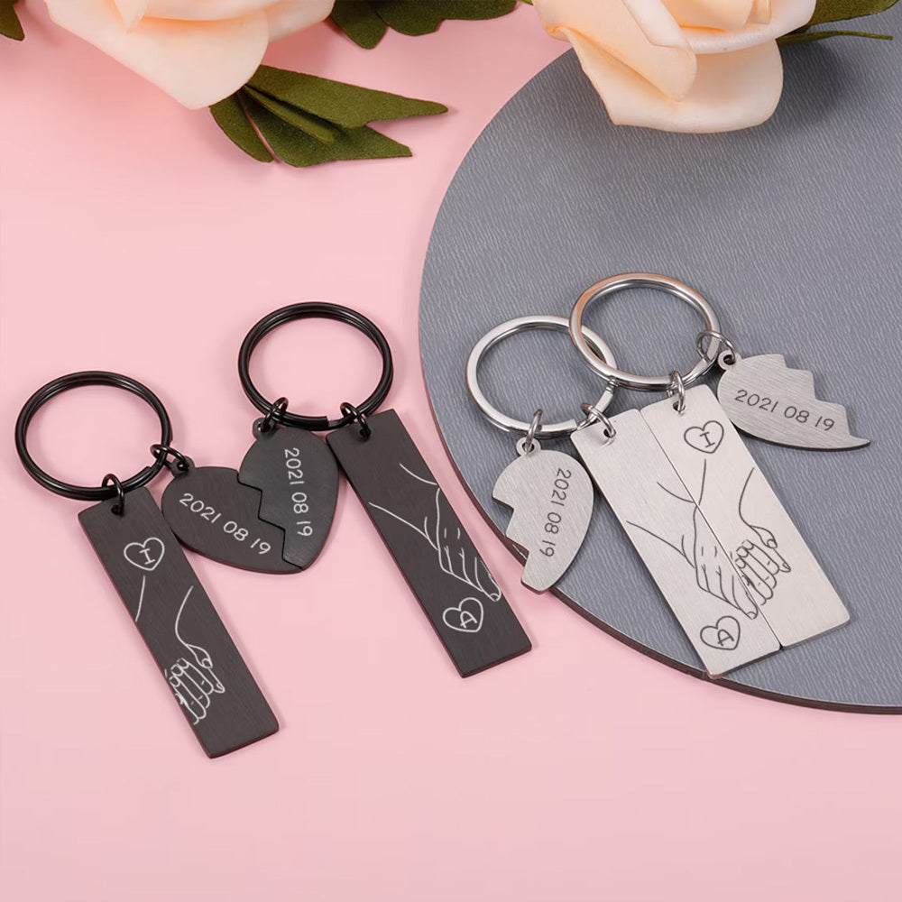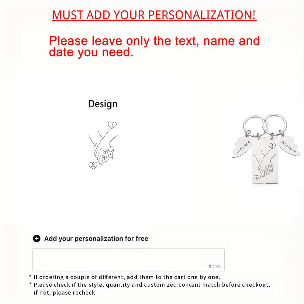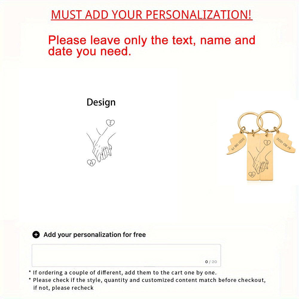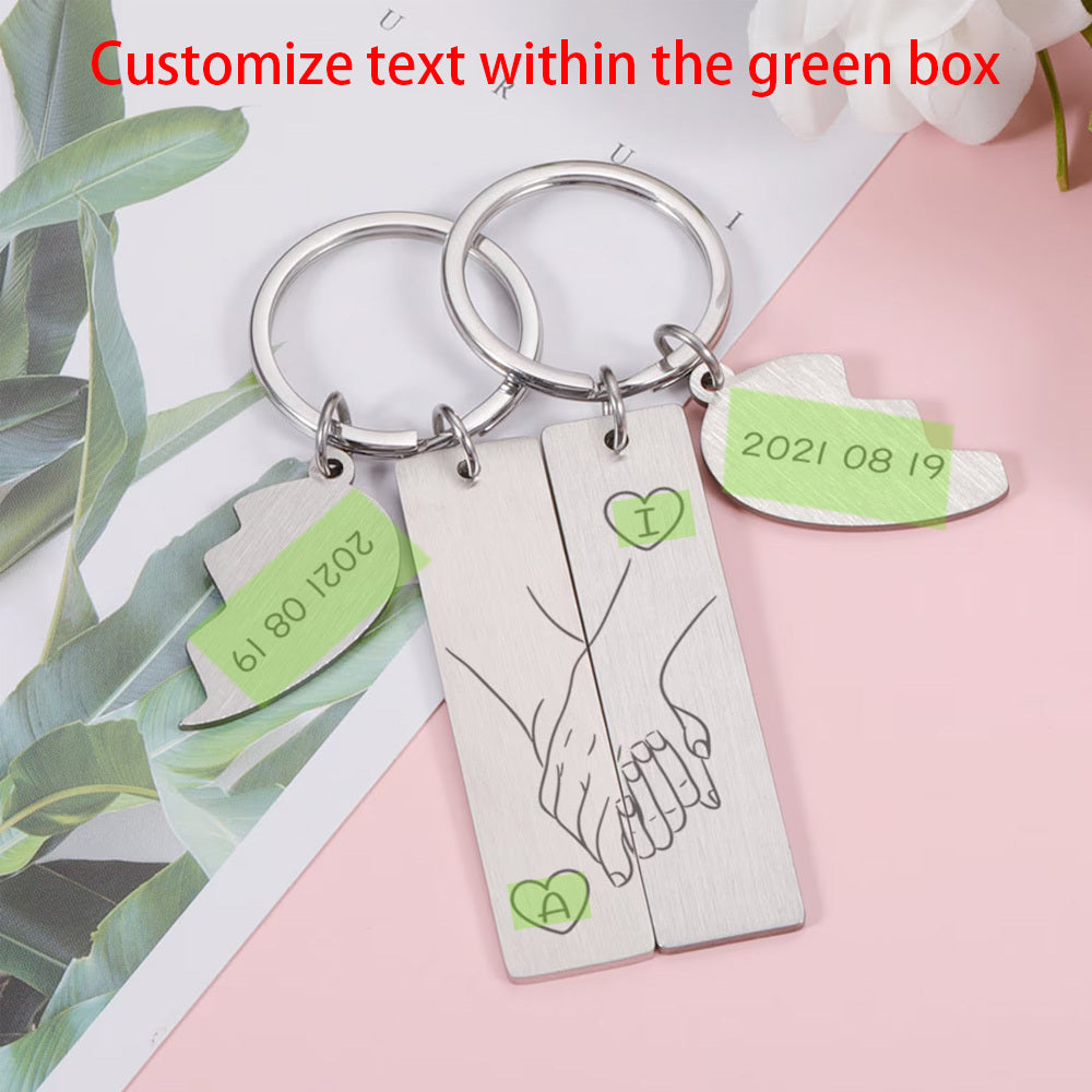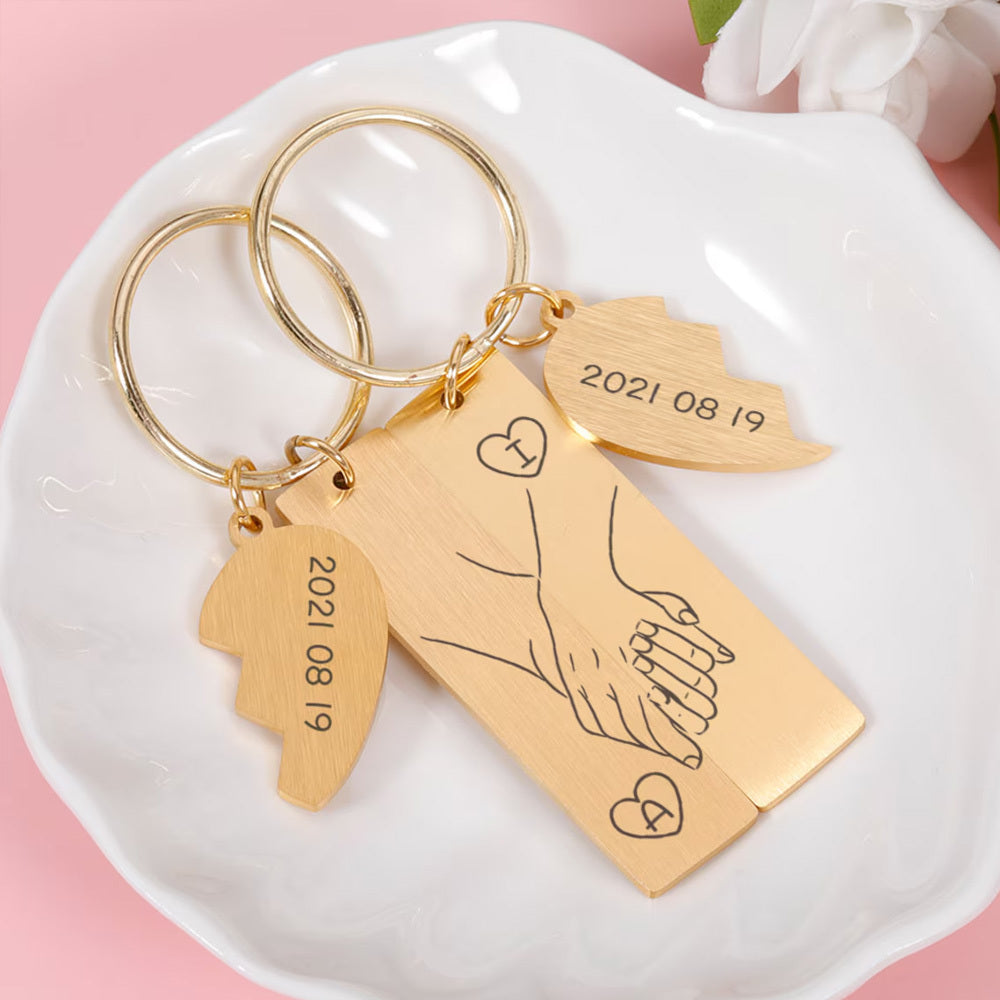 Keep your loved one close with this personalized keychain featuring a couple holding hands. Made of durable stainless steel, this keychain can be engraved with a special message or date.