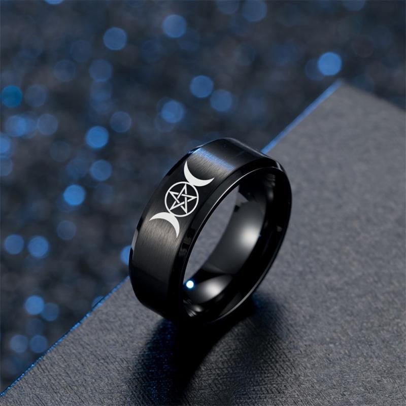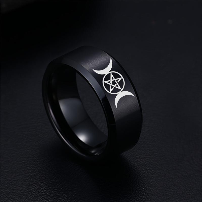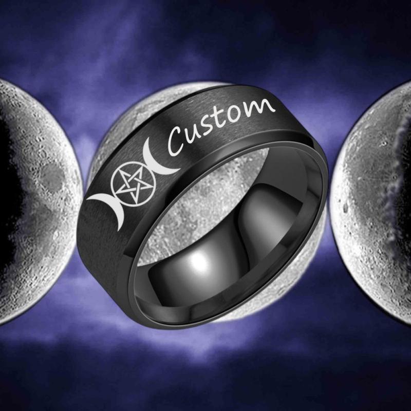 This stunning stainless steel ring features a Triple Moon Goddess design. Personalize it with your name or a meaningful quote. Perfect for Wiccan or Pagan enthusiasts.