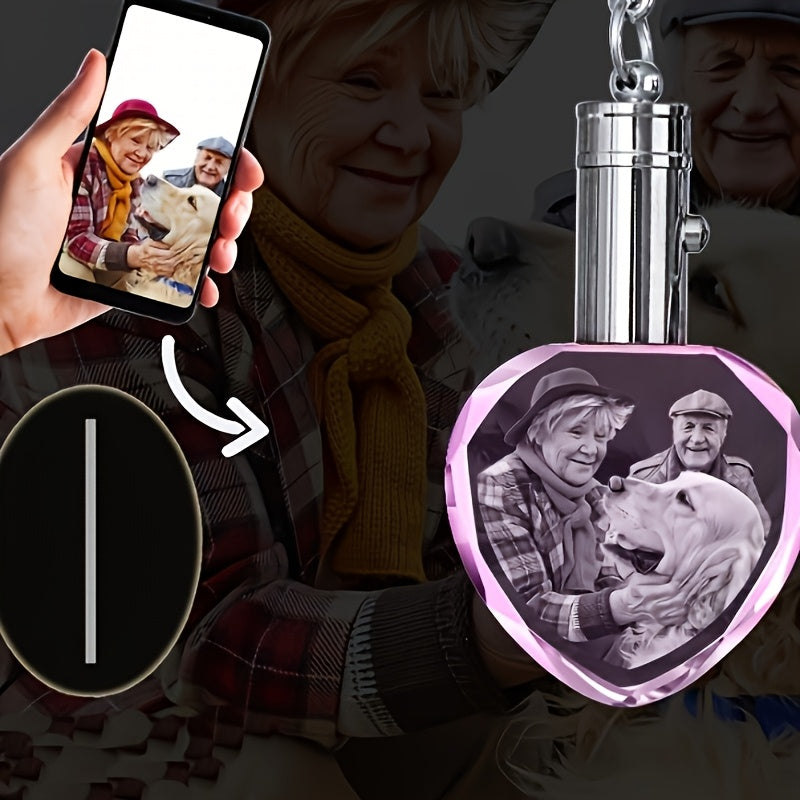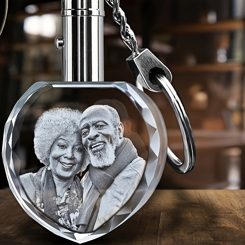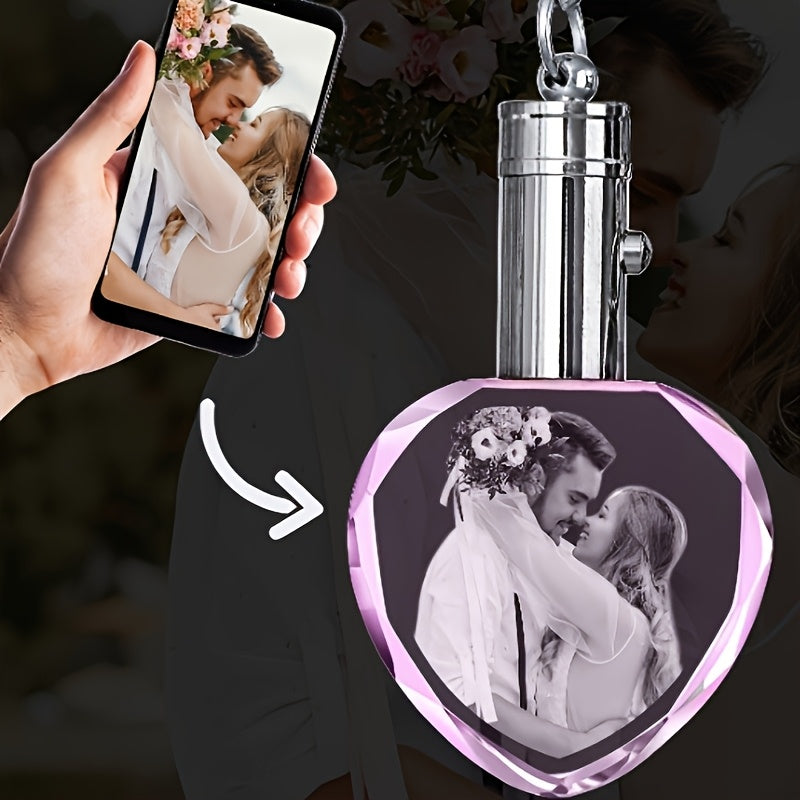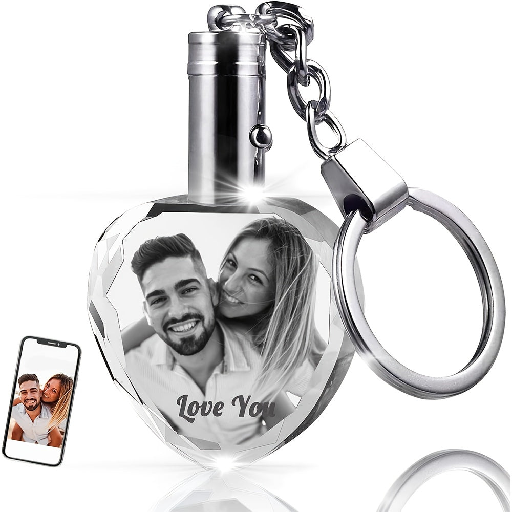This custom heart crystal keychain is a perfect personalized gift for any occasion. Add your favorite photo to create a unique and memorable keepsake.