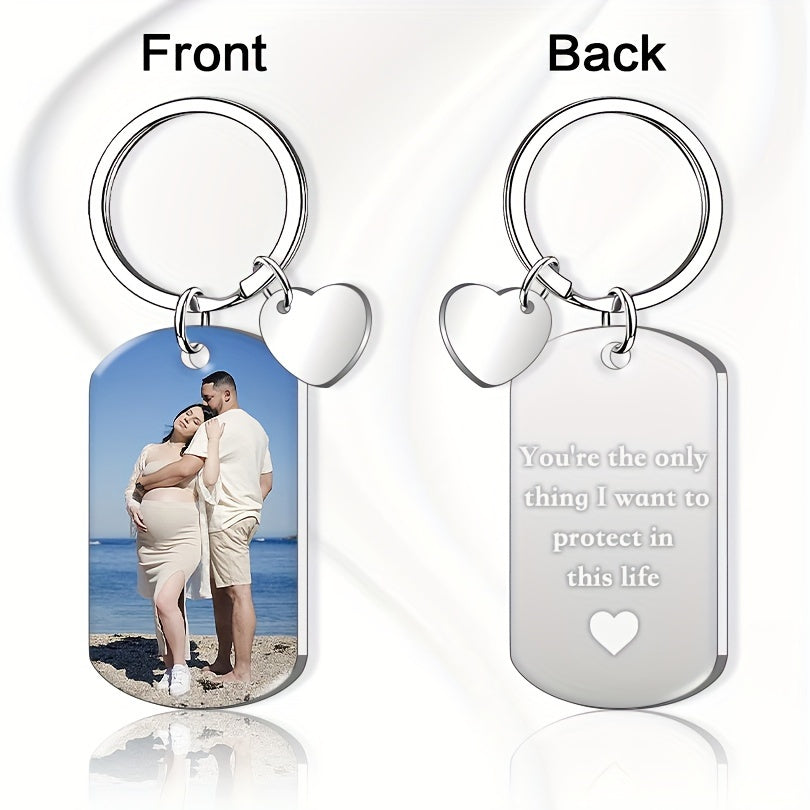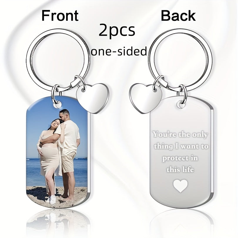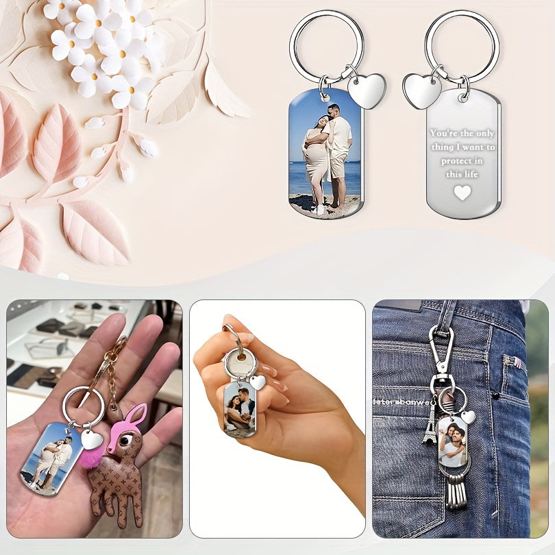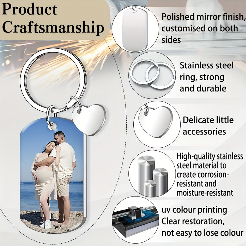 Create a personalized heart keychain with your favorite photo and text. Perfect for family members or spouses. Show your love with this unique accessory.