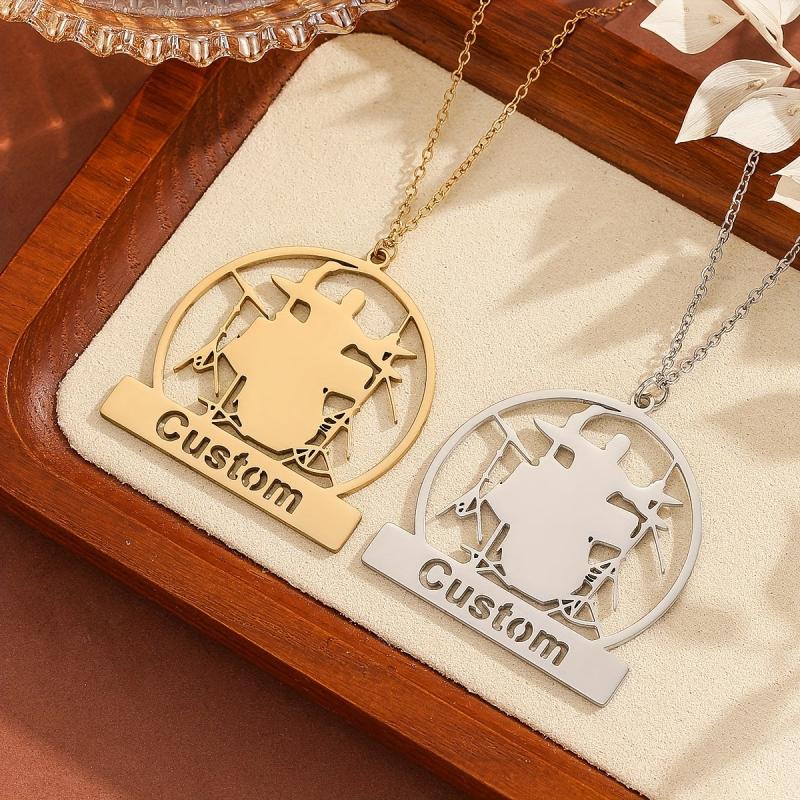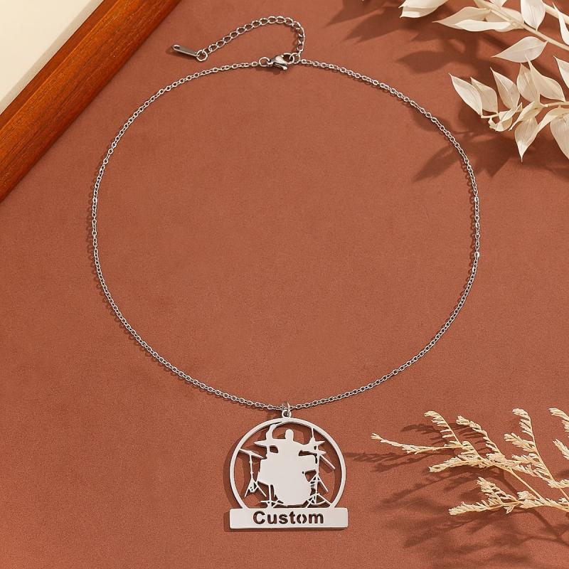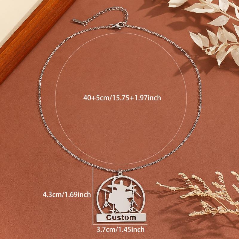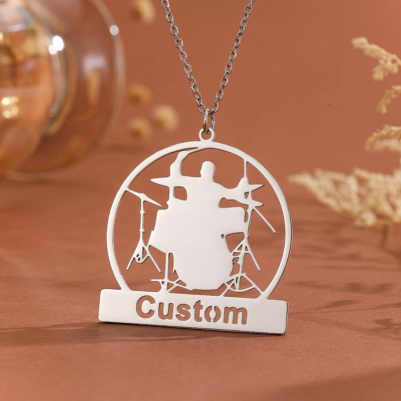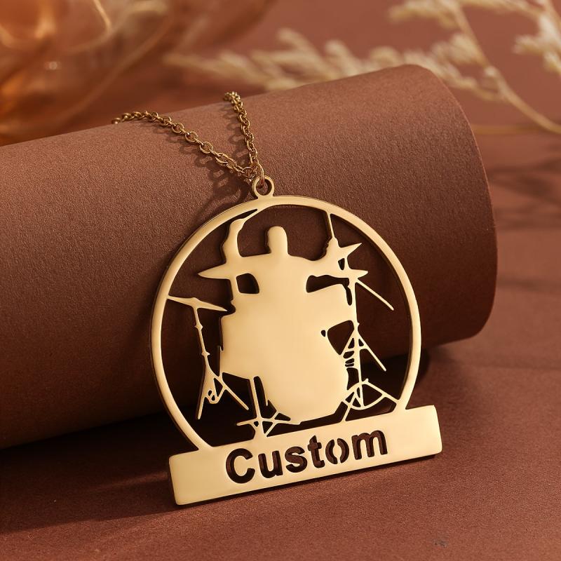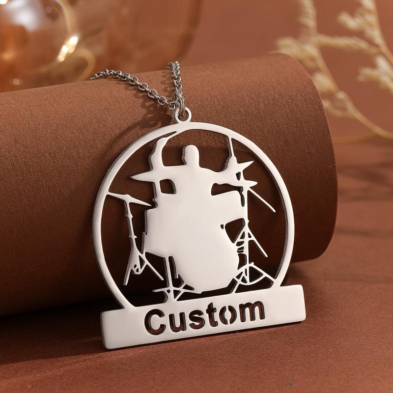 Personalized necklace with drum kit design, perfect for music enthusiasts. Great for Father's Day, birthdays, or anniversaries.