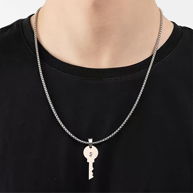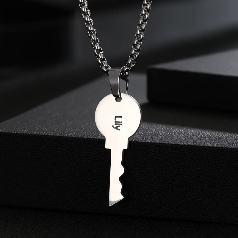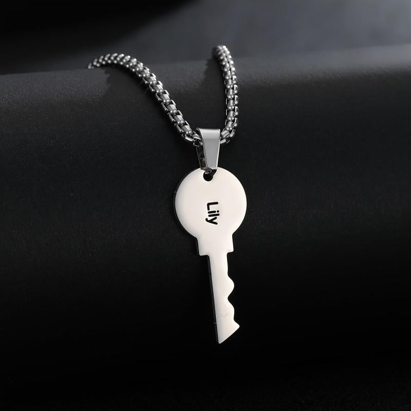 This custom name necklace features a key pendant design made of durable stainless steel. Personalize it with a name or word of your choice. A perfect gift for both women and men.