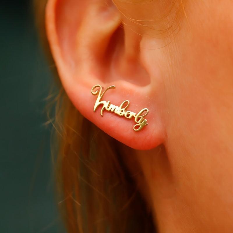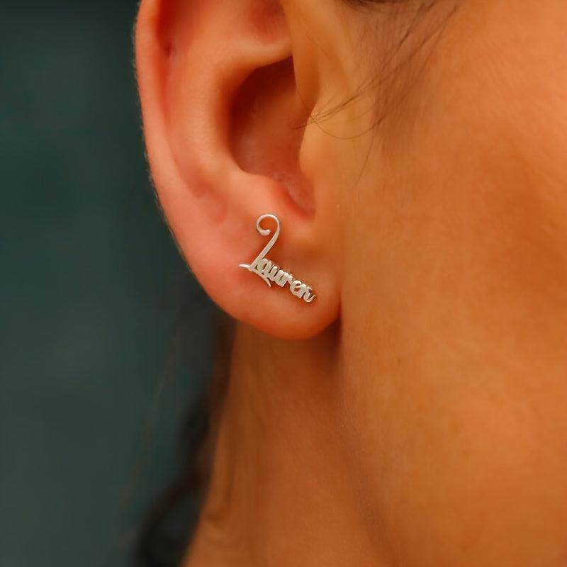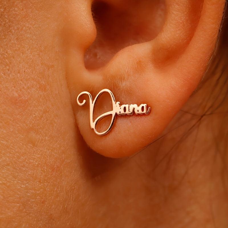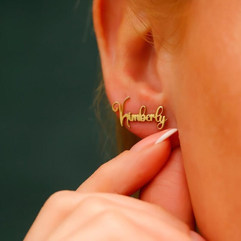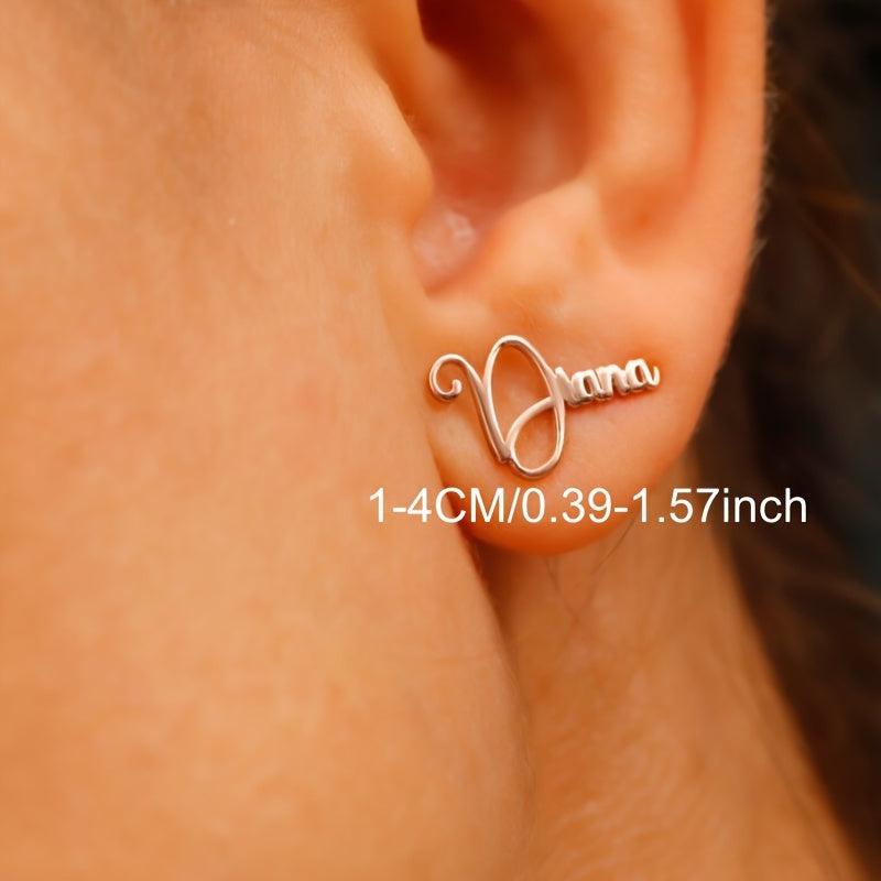 Get the perfect personalized accessory with these custom name stud earrings. Made of stainless steel, these non-plated earrings are hypoallergenic and ideal for Christmas or daily wear.