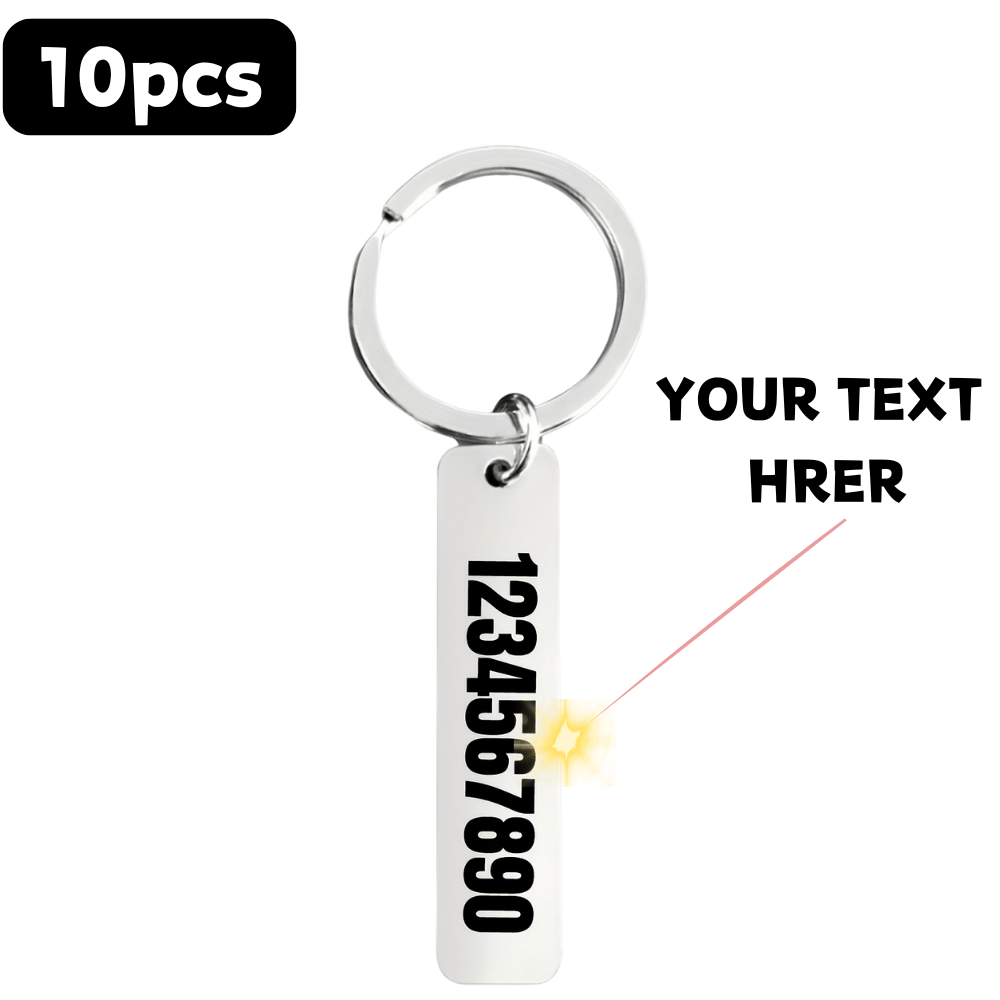 Keep your keys safe with this personalized stainless steel keychain featuring laser engraved name and phone number. Ideal for pet owners, this dog tag package includes 10, 20, or 50 pieces. Perfect for car and home accessories.