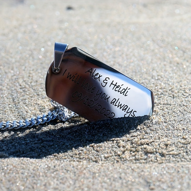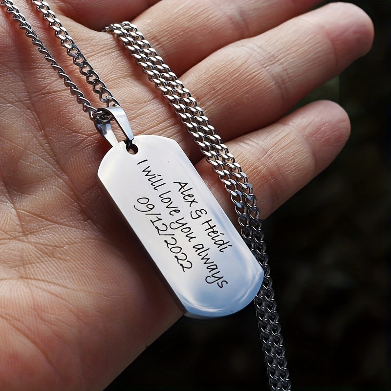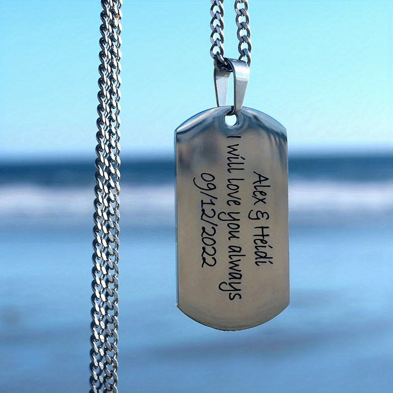 Personalized stainless steel military necklace perfect for men, women, or couples. High-quality, durable and stylish.
