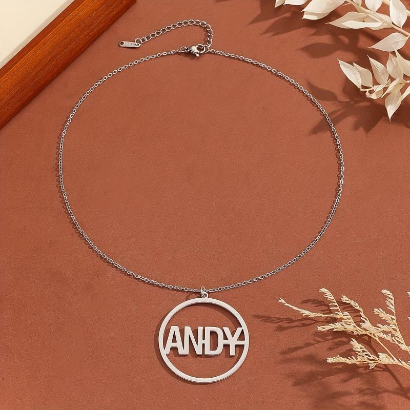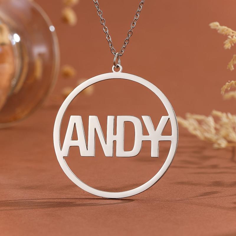 Personalized initials engraved circular pendant necklace. Ideal unisex jewelry gift made for durable casual attire.
