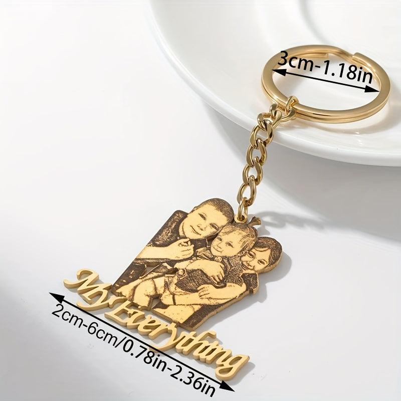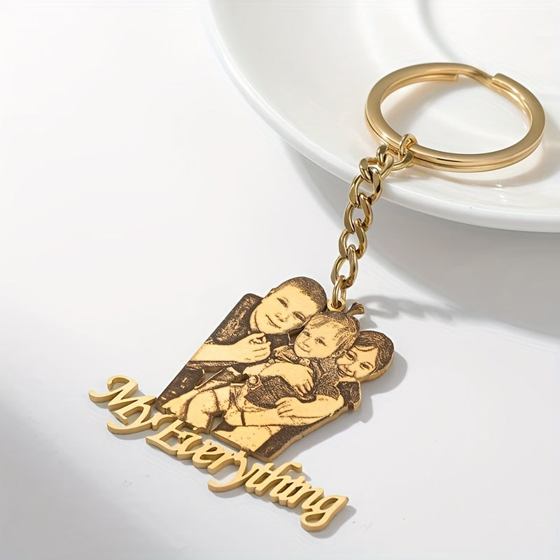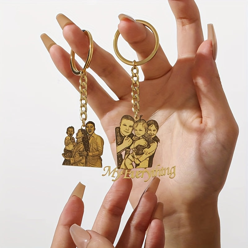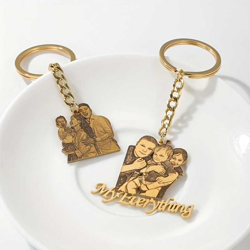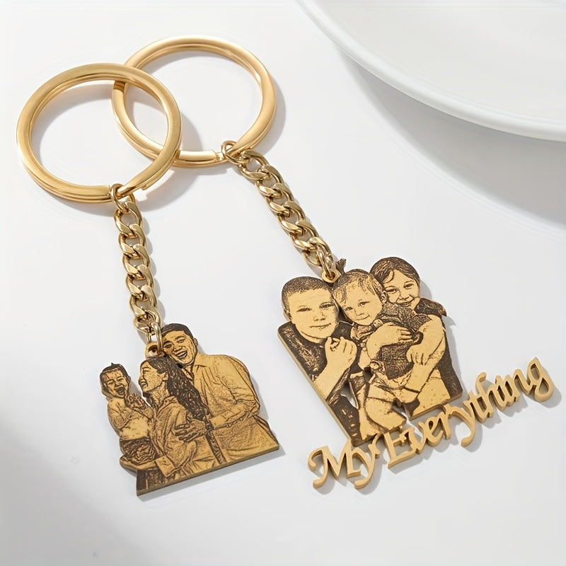 This personalized keychain features a family photo engraved on stainless steel, making it a unique and heartfelt gift for couples or loved ones. Capture special memories with this custom key ring.