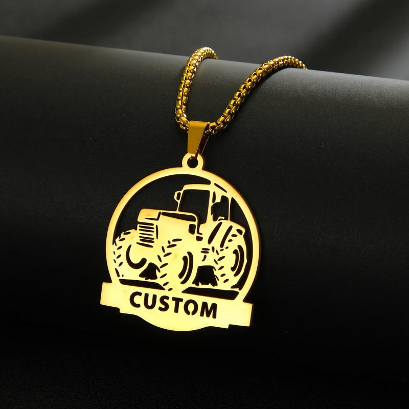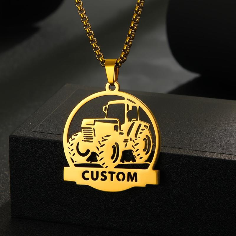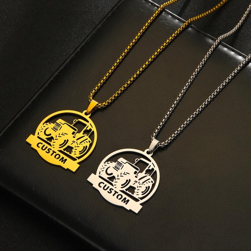 This personalized custom name necklace features a truck pendant made of durable stainless steel in a golden tone. Perfect for men and women on birthdays, Father's Day, or graduation.