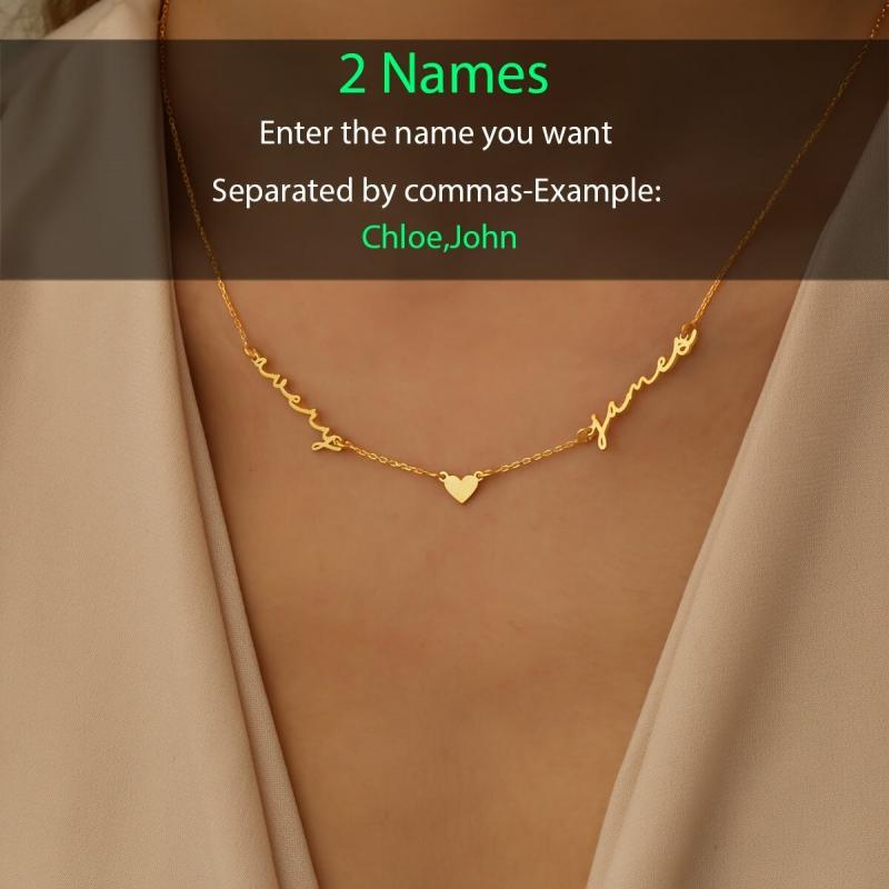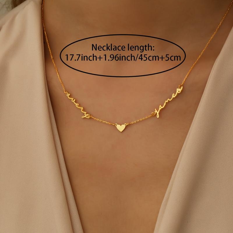 This personalized necklace features two names on a heart-shaped pendant, perfect for gifting on Christmas or Mother's Day. Made of high-quality 18K golden plated stainless steel, this minimalist jewelry piece is a unique and thoughtful gift.