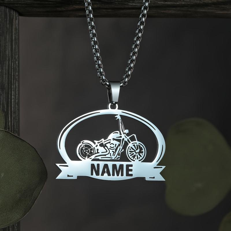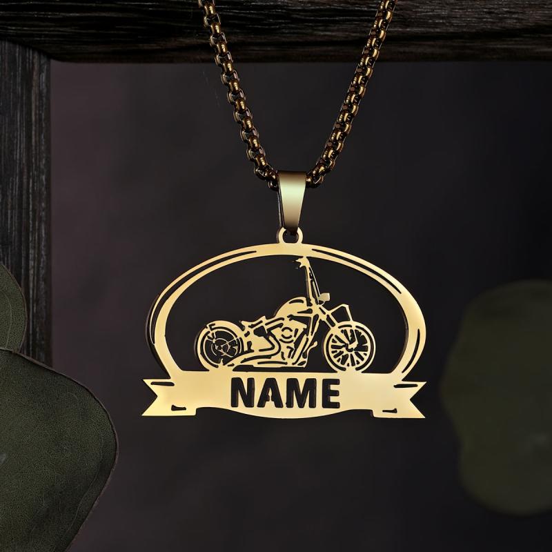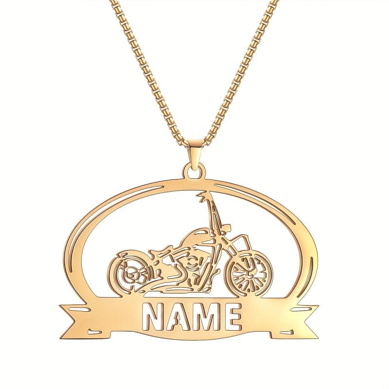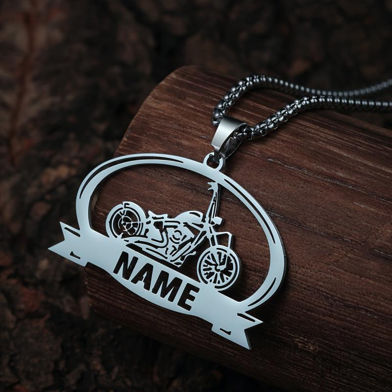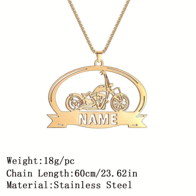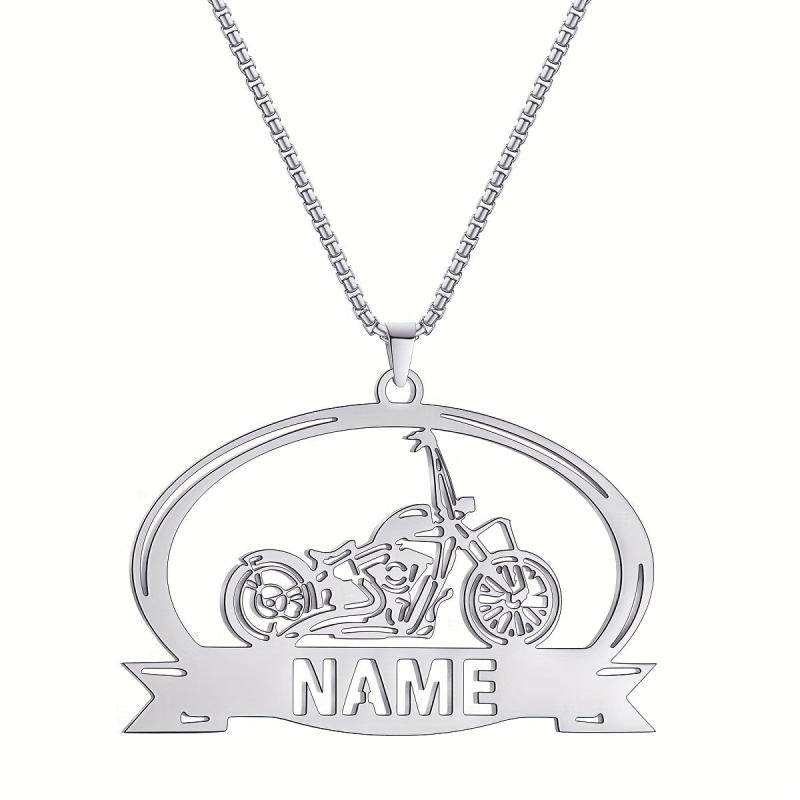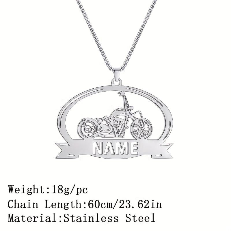 Personalized necklace featuring a motorcycle pendant designed for men. Crafted from high-quality stainless steel.