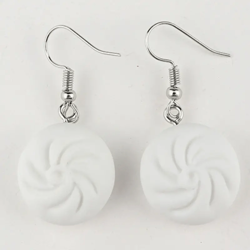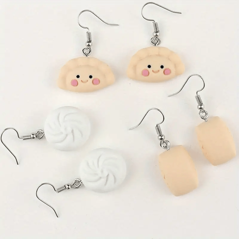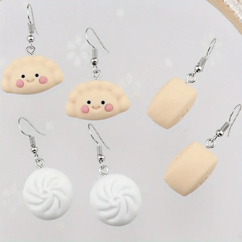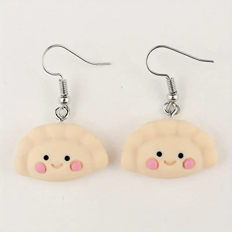 These adorable resin earrings feature a dumpling and a bun design, perfect for daily wear. The hypoallergenic ear needles ensure comfort and safety.