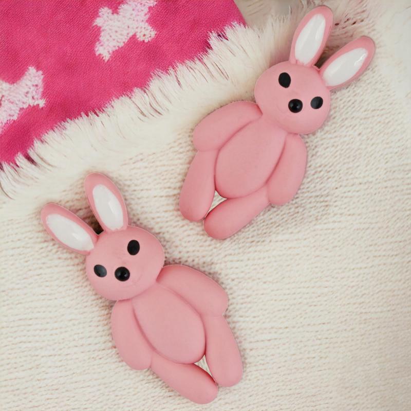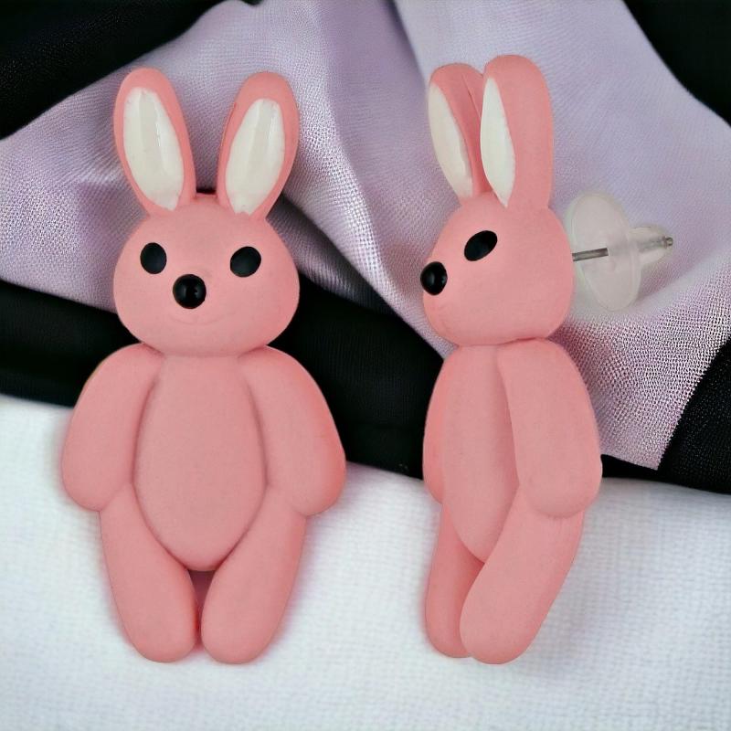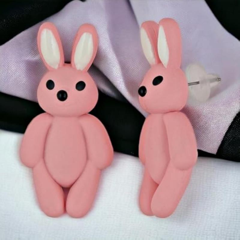 Adorable rabbit-shaped teddy bear earrings that are both stylish and fun. Perfect for adding a touch of whimsy to your outfits.