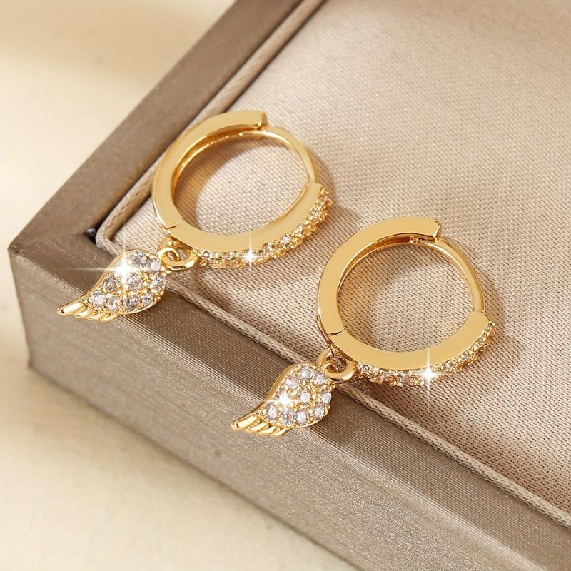 Elegant angel wings design with sparkling cubic zirconia in copper. Ideal for daily wear and makes a great gift.