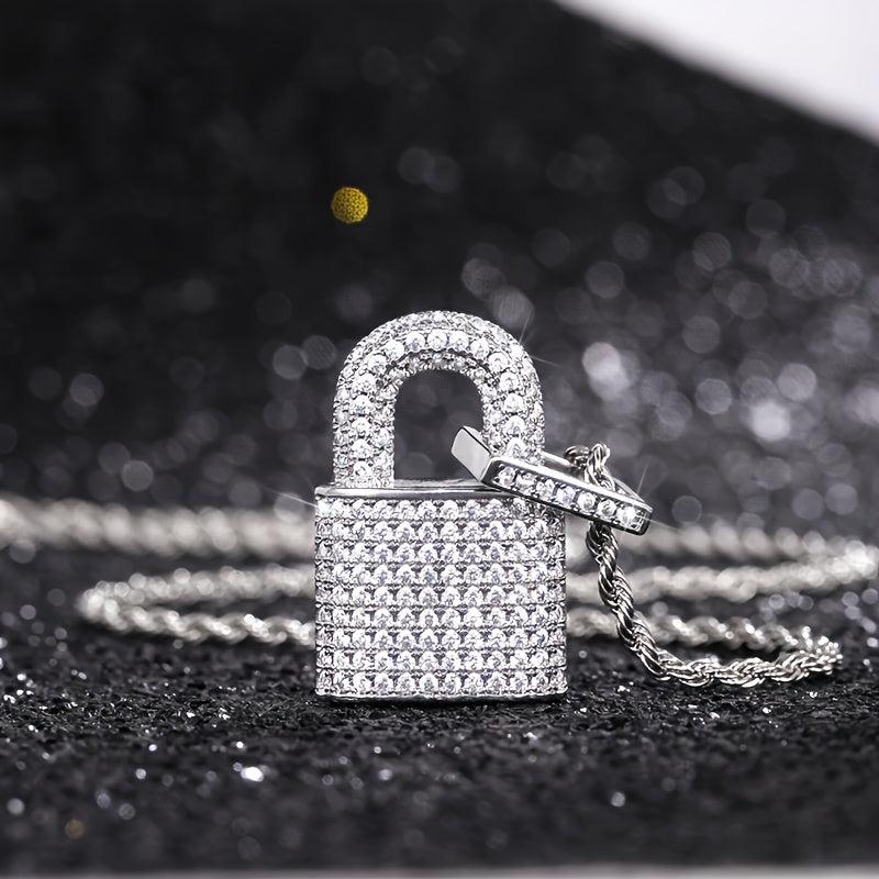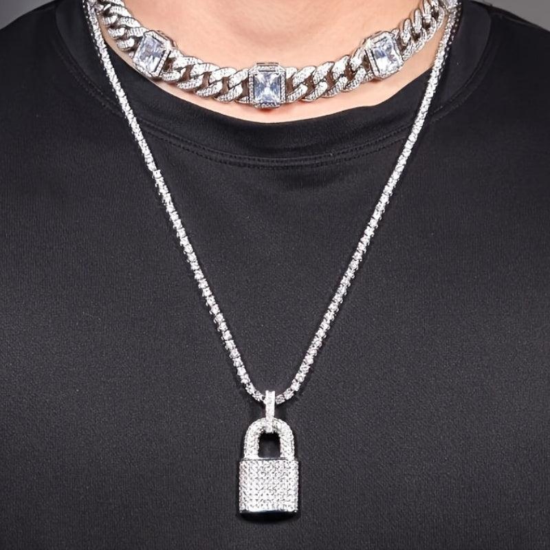 Elevate your style with this stunning CZ chain necklace featuring a lock pendant. Perfect for parties, music festivals, and any special occasion.