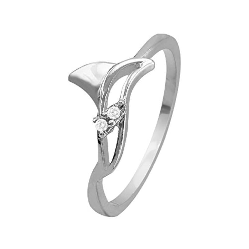 Elegant CZ Floral Lily Rhodium Plated Ring for a touch of sophistication.