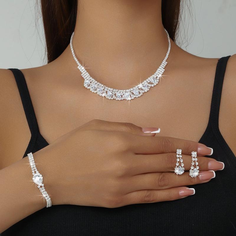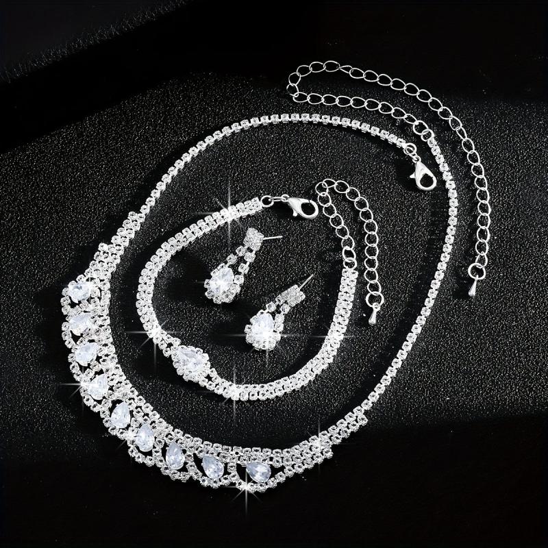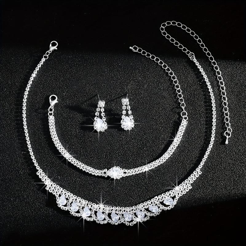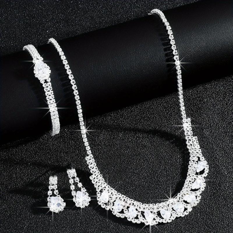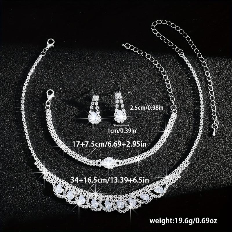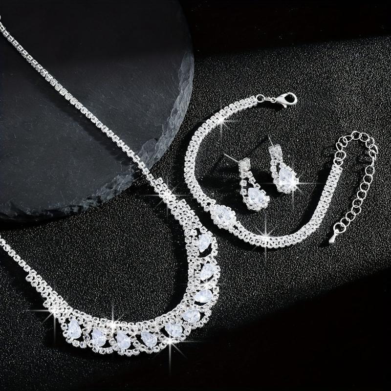 This stunning wedding jewelry set features K plated cubic zirconia flower design. Perfect for weddings and carnivals.