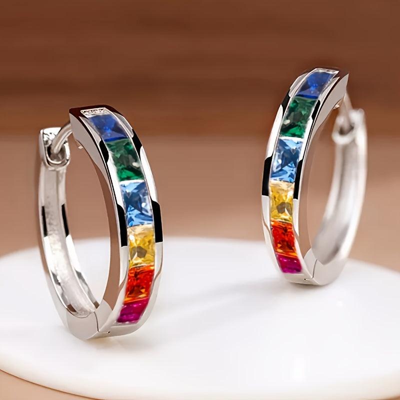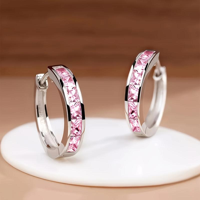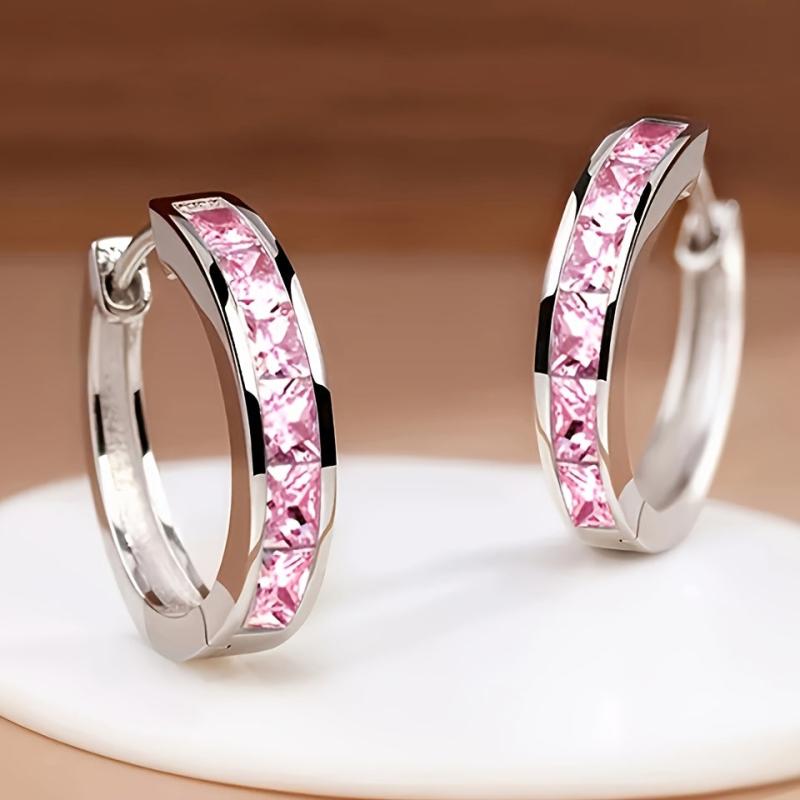 These stunning hoop earrings are made with high-quality cubic zirconia stones that dazzle and shine like diamonds. The earrings are plated in white gold for a luxurious look that will complement any outfit.