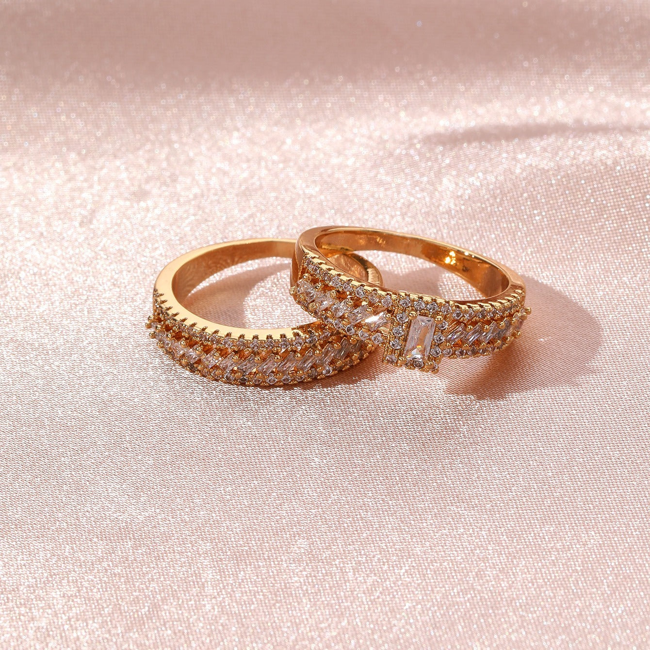 These dainty cubic zirconia rings are perfect for women who love minimalist jewelry. The open design and golden plating add a touch of elegance to your look.