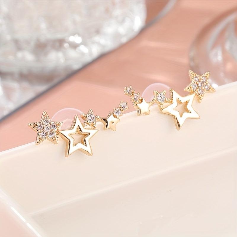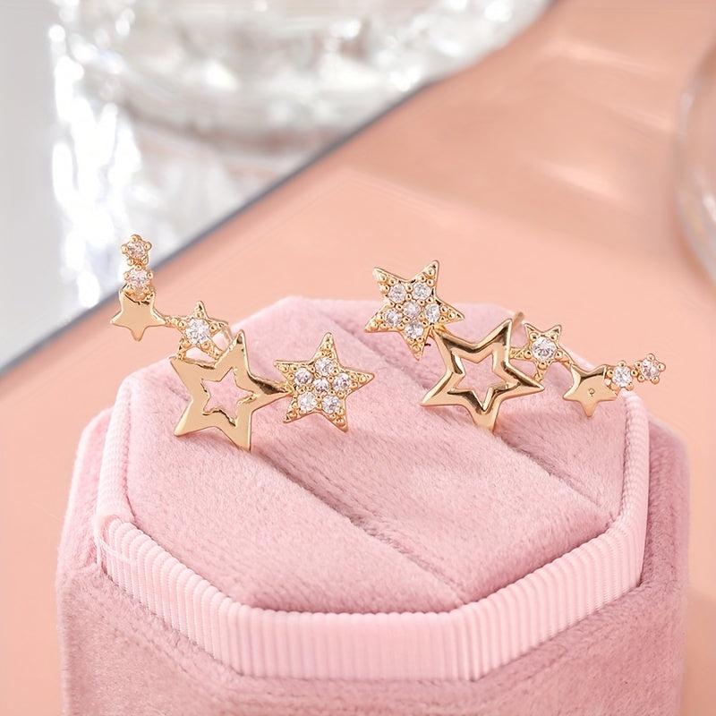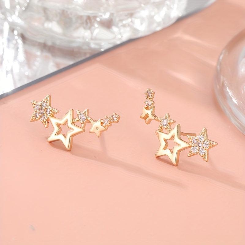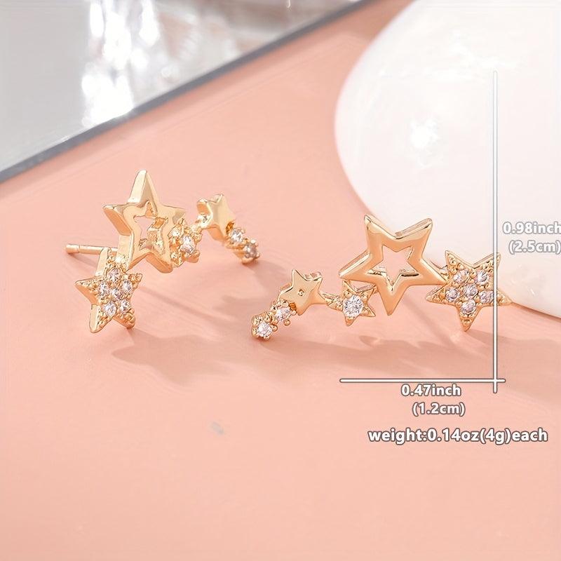 Add a touch of sparkle with these star stud earrings featuring synthetic cubic zirconia. Perfect for daily wear or gifting, these golden tone earrings are versatile and stylish.