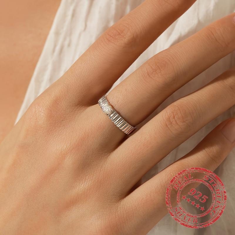 This elegant ring features a wide band adorned with D Moissanite stones. Made of high-quality 925 sterling silver, this ring is perfect for women who love stylish jewelry.