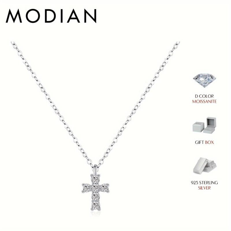 Elegant cross pendant necklace crafted with dazzling D VVS1 Moissanite stones in 925 sterling silver. Perfect for women who love sparkling jewelry.
