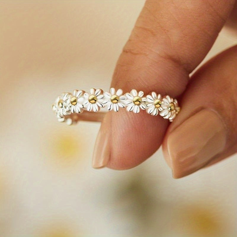 This stunning daisy flower ring is a symbol of promise and romance, perfect for engagements or special occasions.