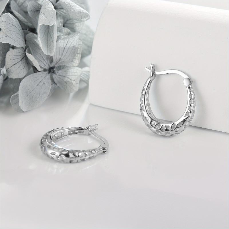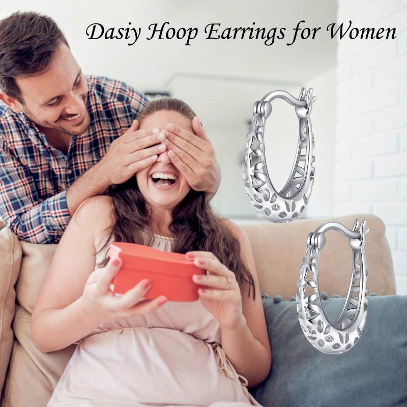 These stunning daisy oval hoop earrings are crafted in sterling silver with intricate filigree details. A perfect vintage-inspired accessory for women, these earrings make a thoughtful gift.
