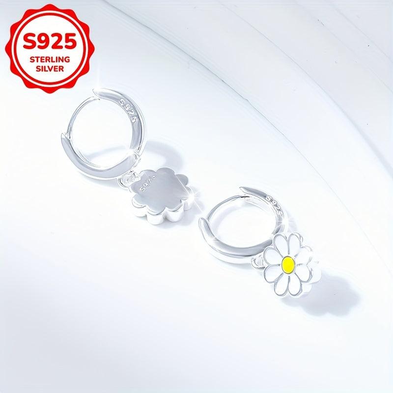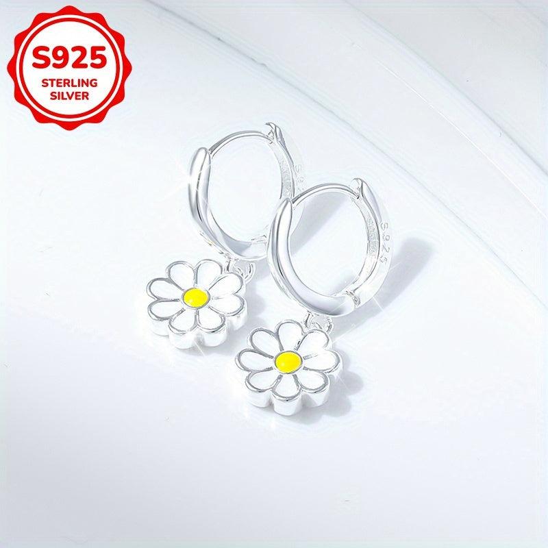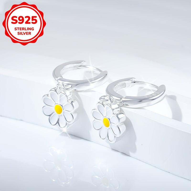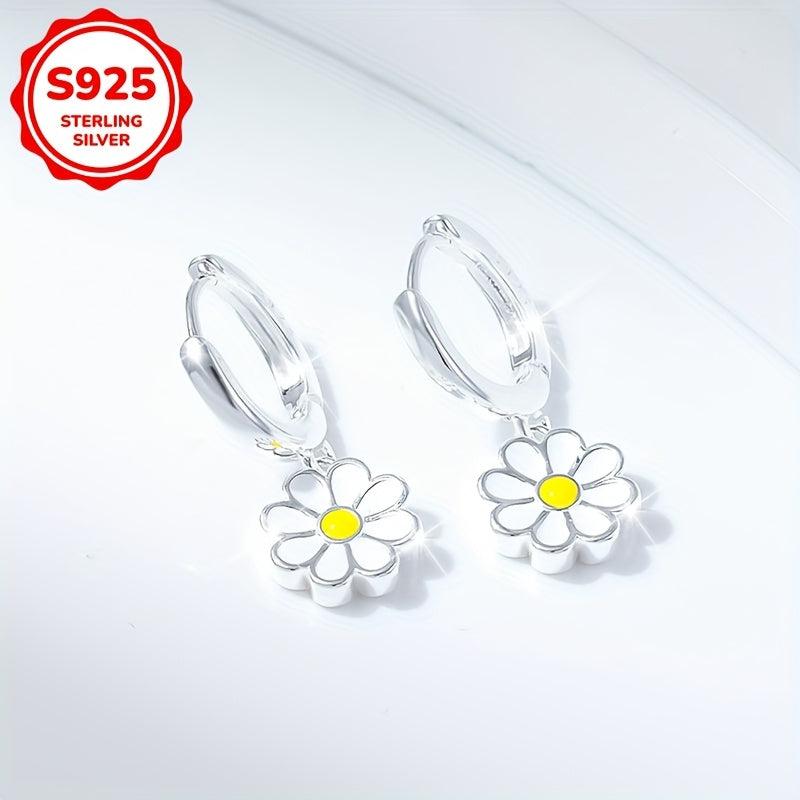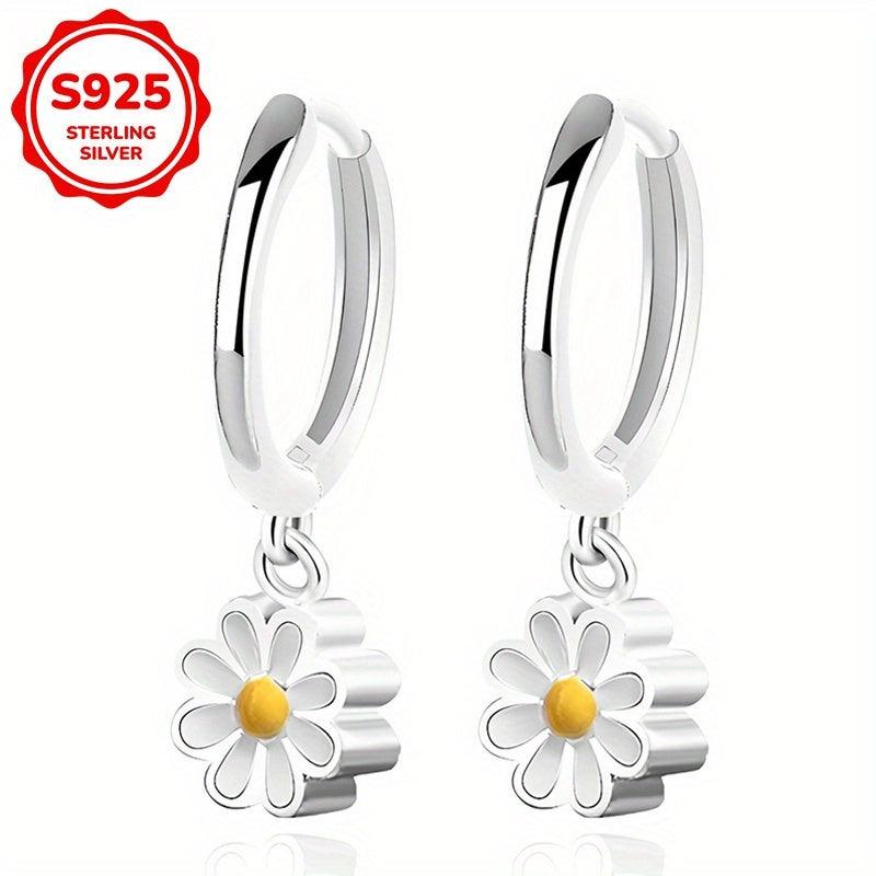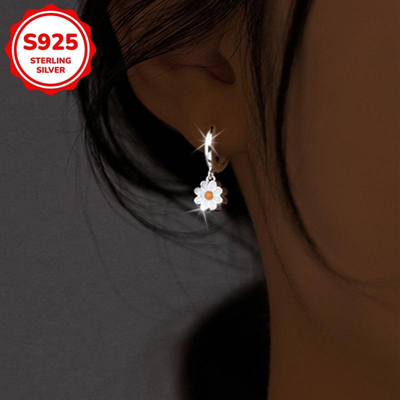 These daisy pendant earrings are made of 925 silver, weighing 3.3g. They are versatile for daily wear and vacation.