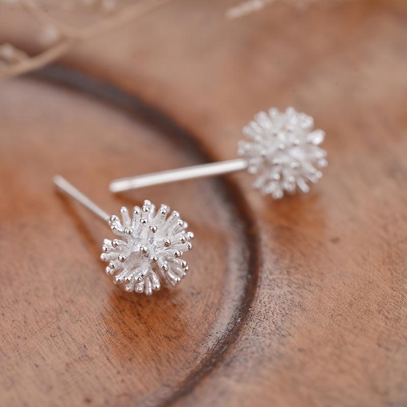 These round ball flower earrings feature a dandelion design, perfect for maintaining pierced ears. The hypoallergenic material ensures comfort and style.