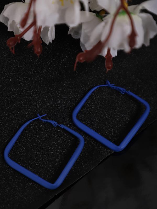 Elevate your look with these dark blue hoop earrings. The perfect accessory to add a pop of color and style to any outfit.
