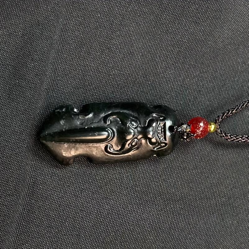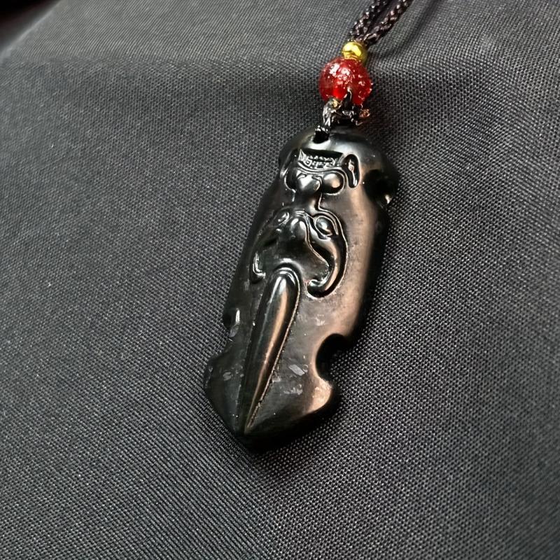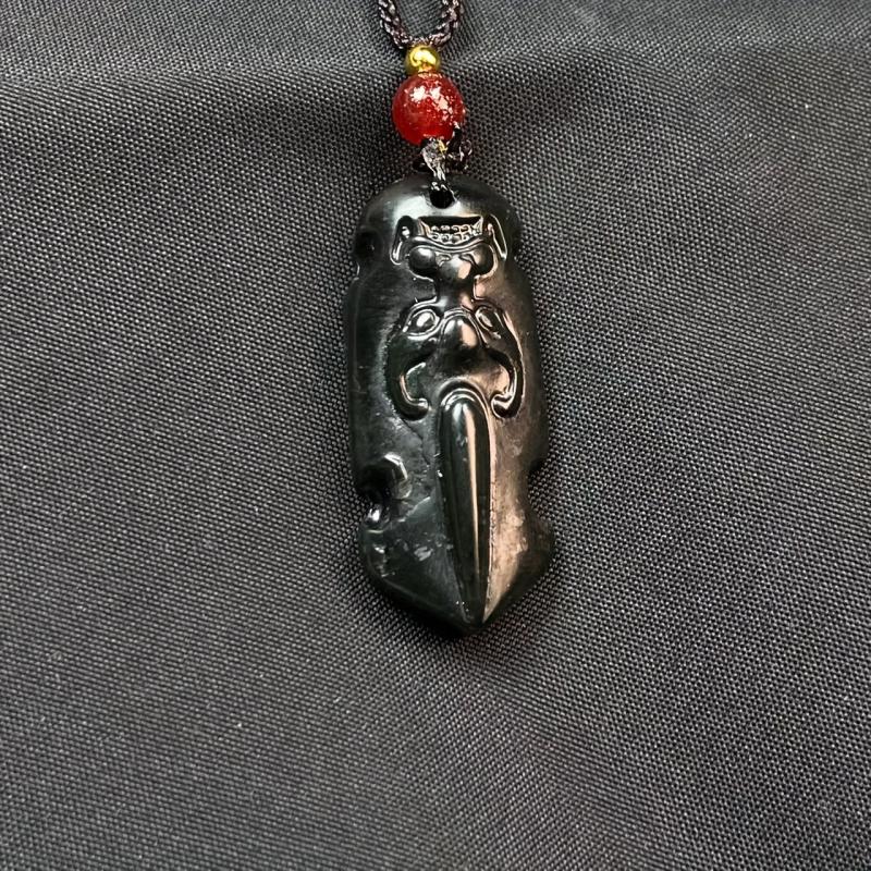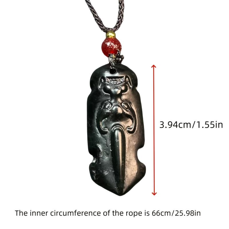 This stylish pendant necklace features a dark green beast face carved from natural stone, making it a unique and eye-catching accessory. It comes with a matching cord for easy wear, perfect for casual attire or as a birthday gift.