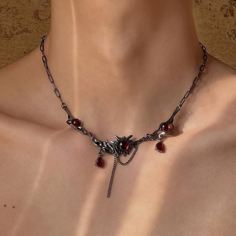 Add an edgy touch to your look with this dark red glass bead tassel necklace. Perfect for casual wear, this statement piece is made of high-quality alloy material.