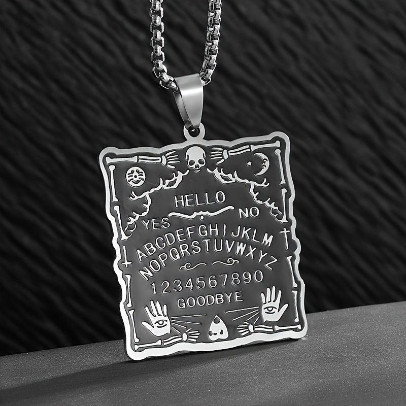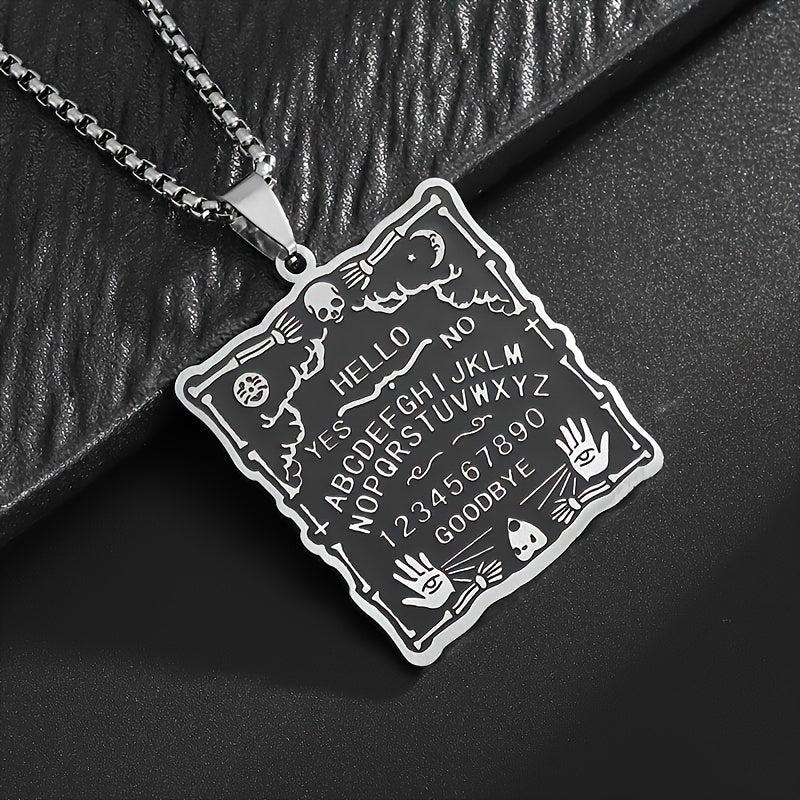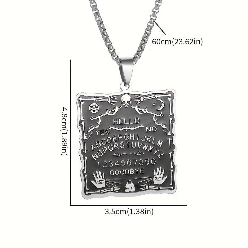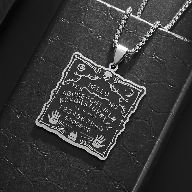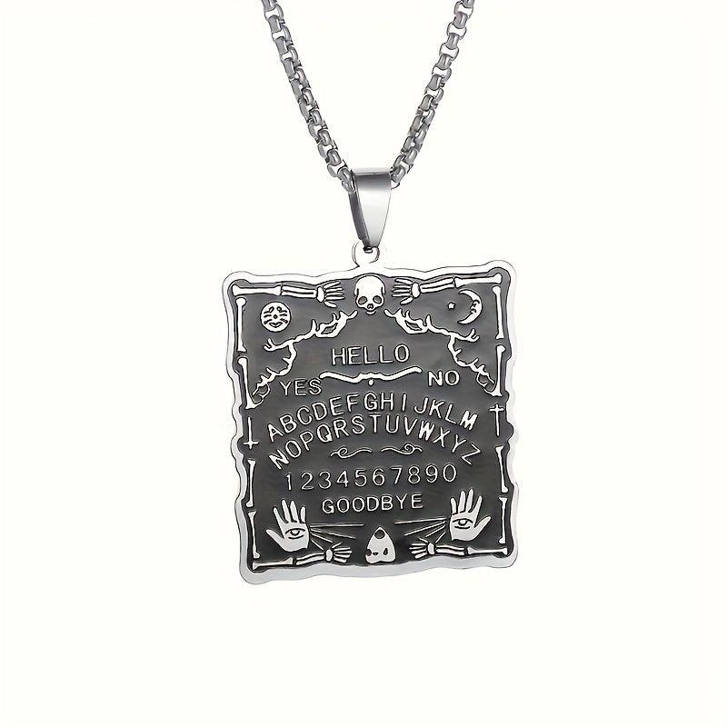 Unleash your inner mystique with this dark witchcraft-inspired stainless steel pendant necklace featuring a unique palm character square tag design.