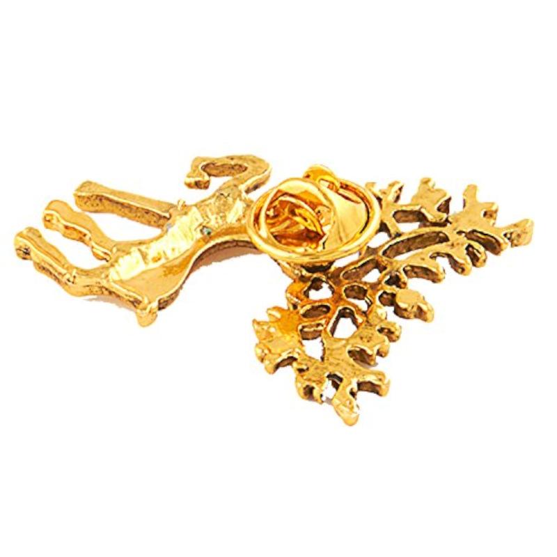 Elegant and stylish deer lapel pin plated in gold for added sophistication.