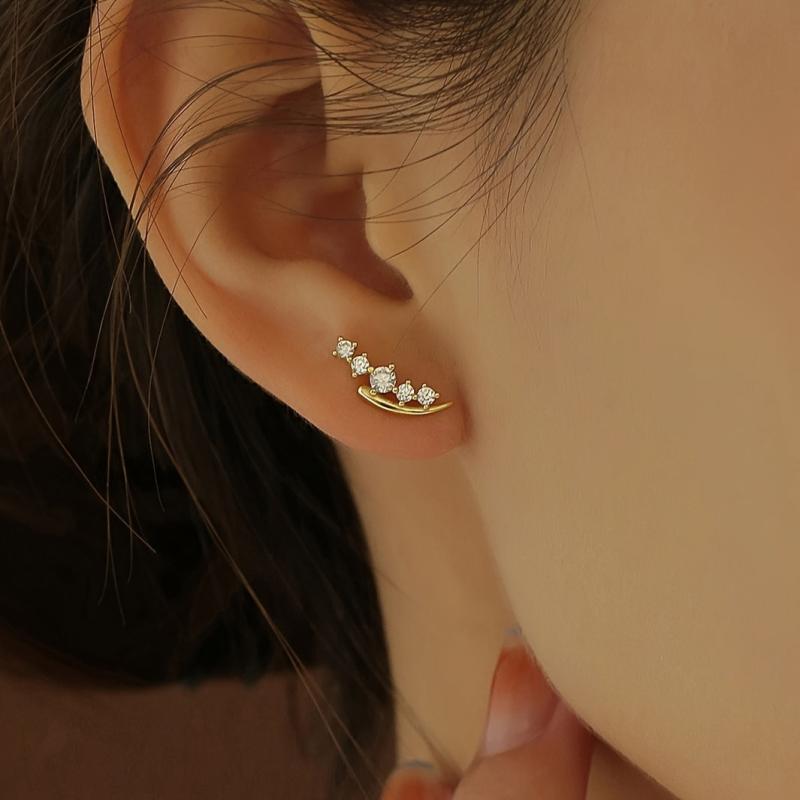 These tiny stud earrings are made of copper and embellished with zirconia, adding a touch of elegance to any outfit. Perfect for daily wear.
