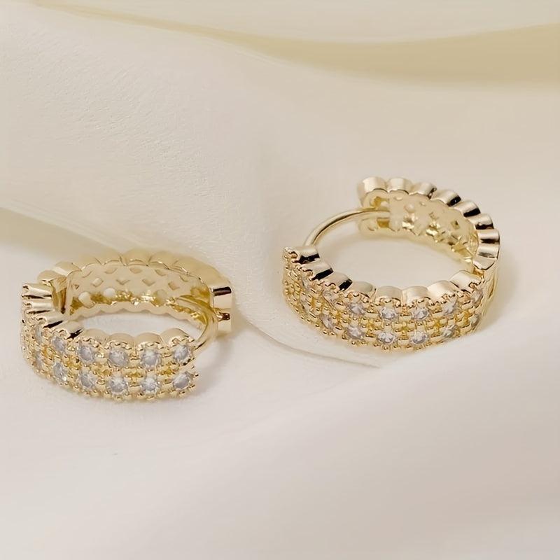 Add a touch of elegance to your look with these double row zirconia inlaid hoop earrings. Made from copper with 18K gold plating, these earrings are perfect for adding a hint of sparkle to any outfit.