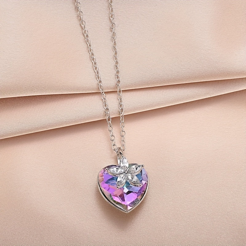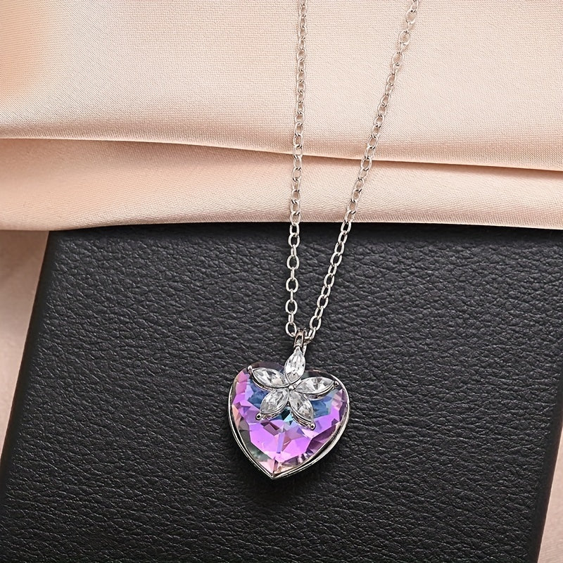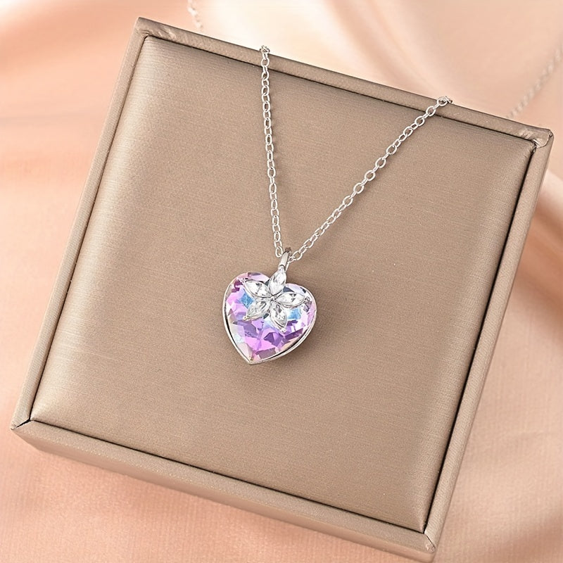 Elegant heart necklace featuring a sparkling crystal pendant. Perfect for adding a touch of glamour to any outfit.