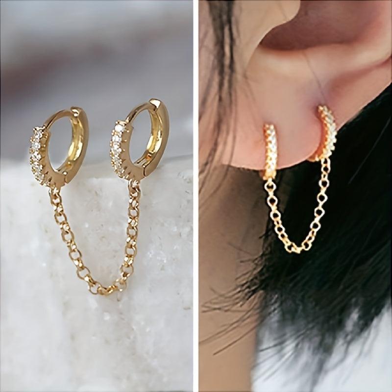 These fashionable earrings are perfect for women who love a unique and avant-garde style. Inlaid with synthetic zirconia, these earrings are sure to make a statement.
