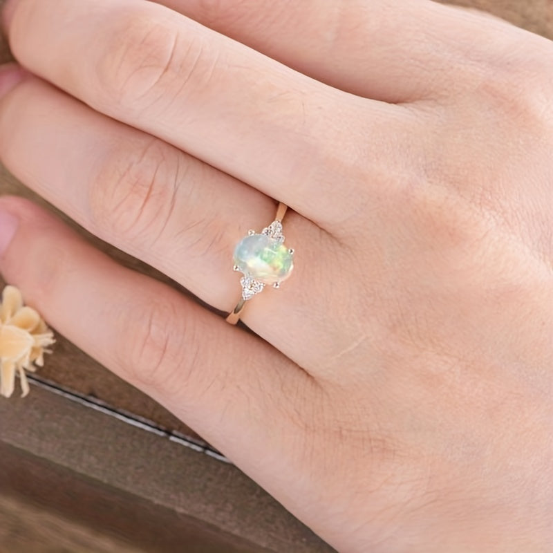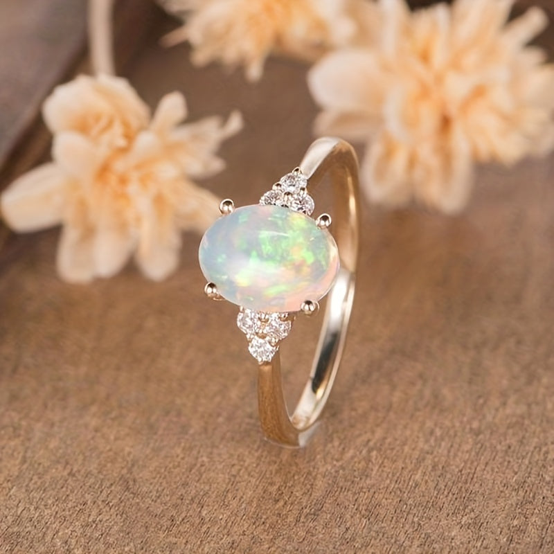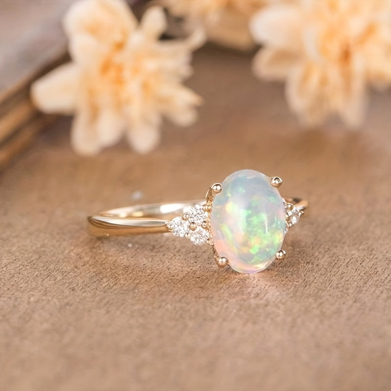 Elegant opal golden ring suitable for both men and women, a perfect gift idea. This casual jewelry piece adds a touch of sophistication to any outfit.