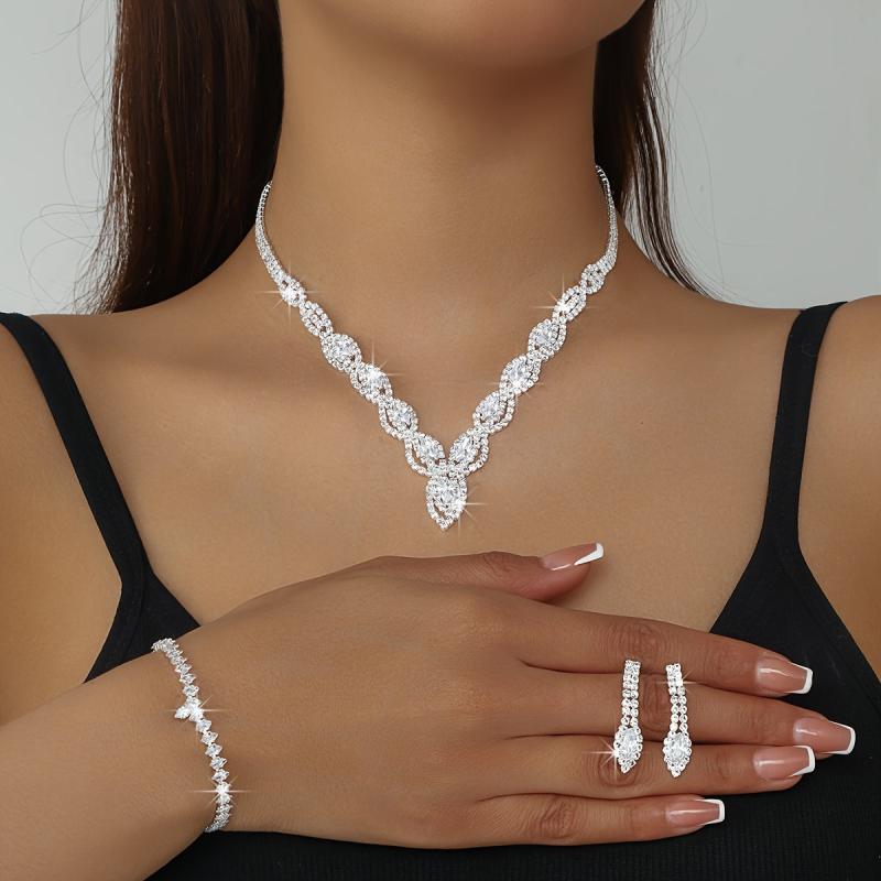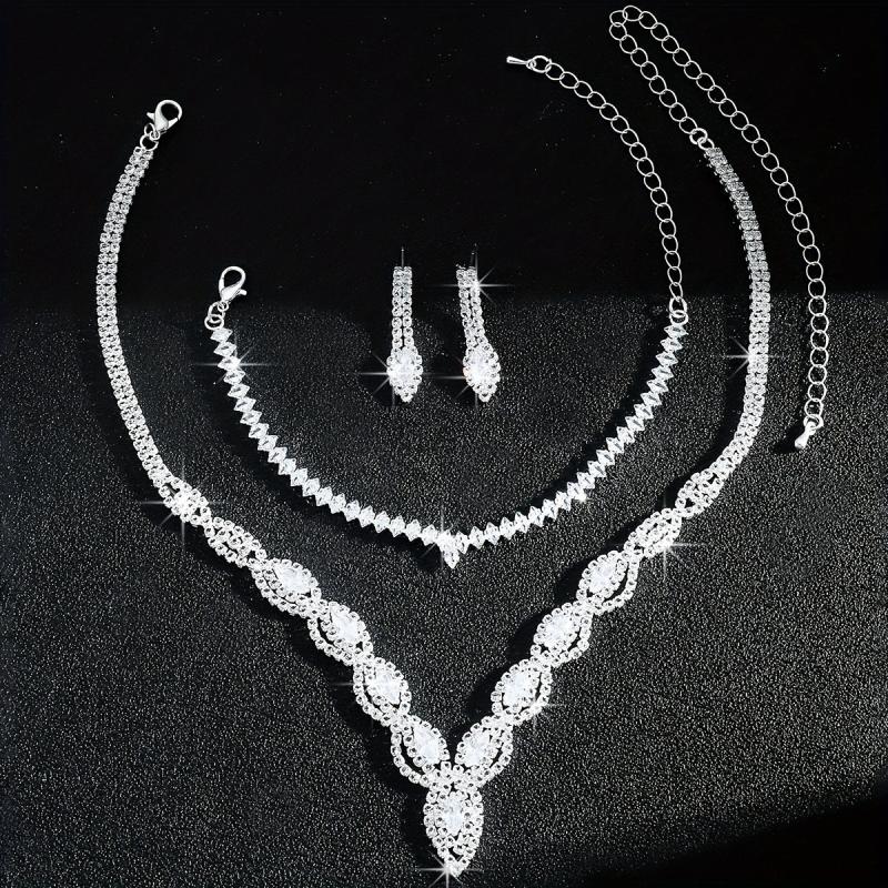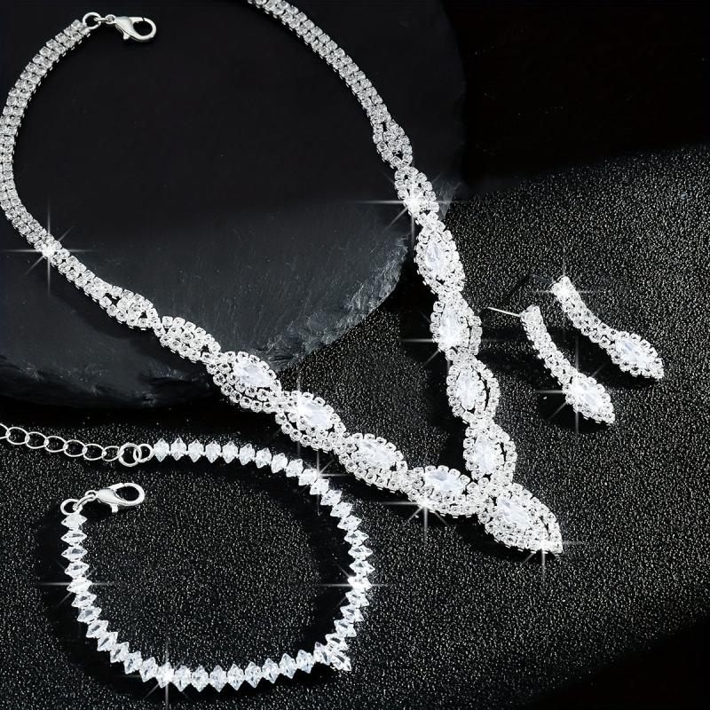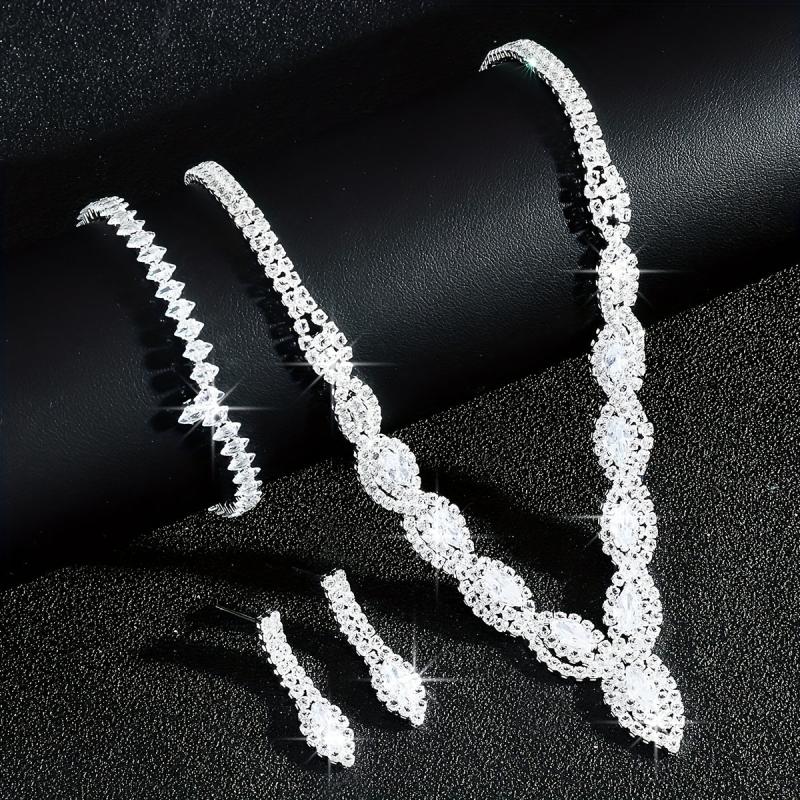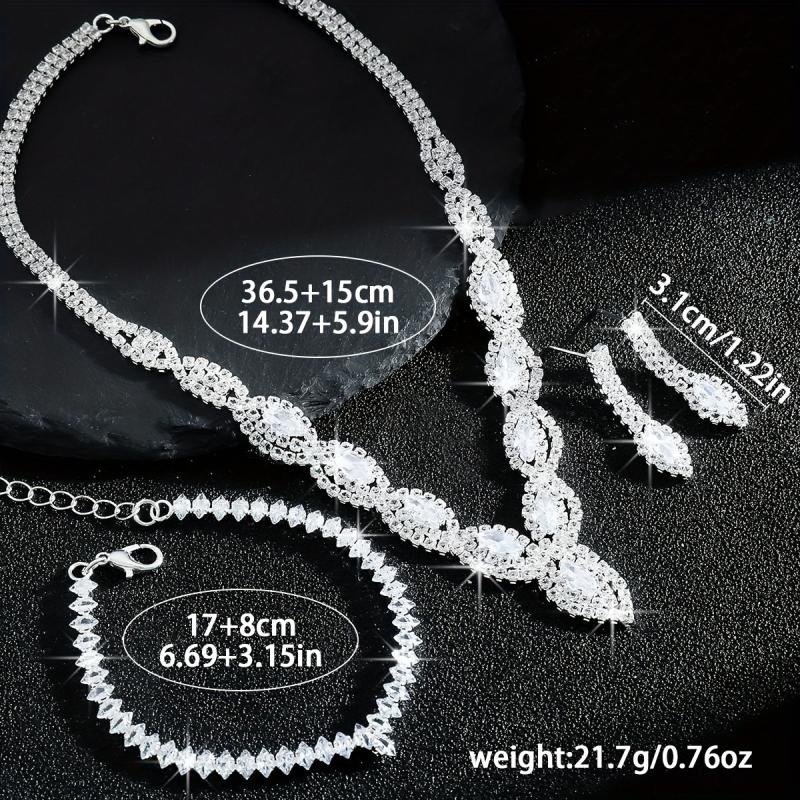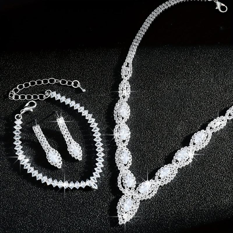 Complete your bridal look with this stunning jewelry set featuring a devil's eye necklace, bracelet, and earrings. The set is made with sparkling rhinestones on a copper base, perfect for weddings and formal events.
