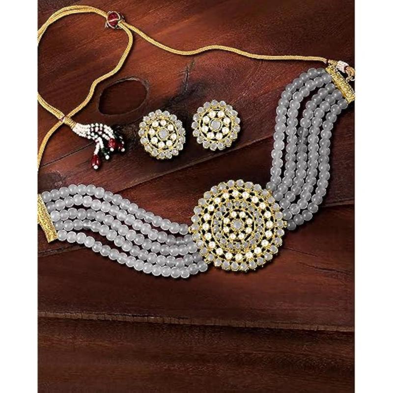 Exude traditional elegance with this stunning choker set featuring pearl and diamond detailing.