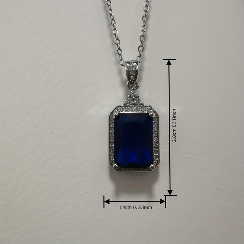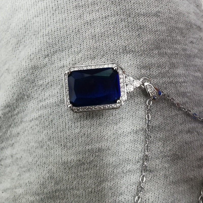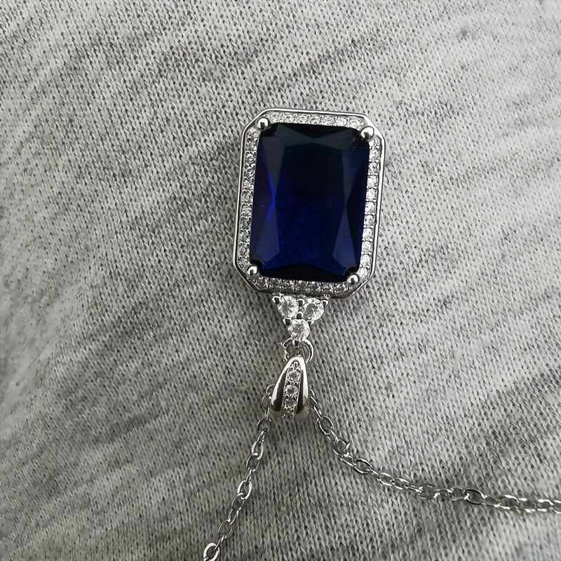 Elegant rectangular sapphire necklace with dazzling diamond accents, perfect for adding a touch of glamour to any outfit.
